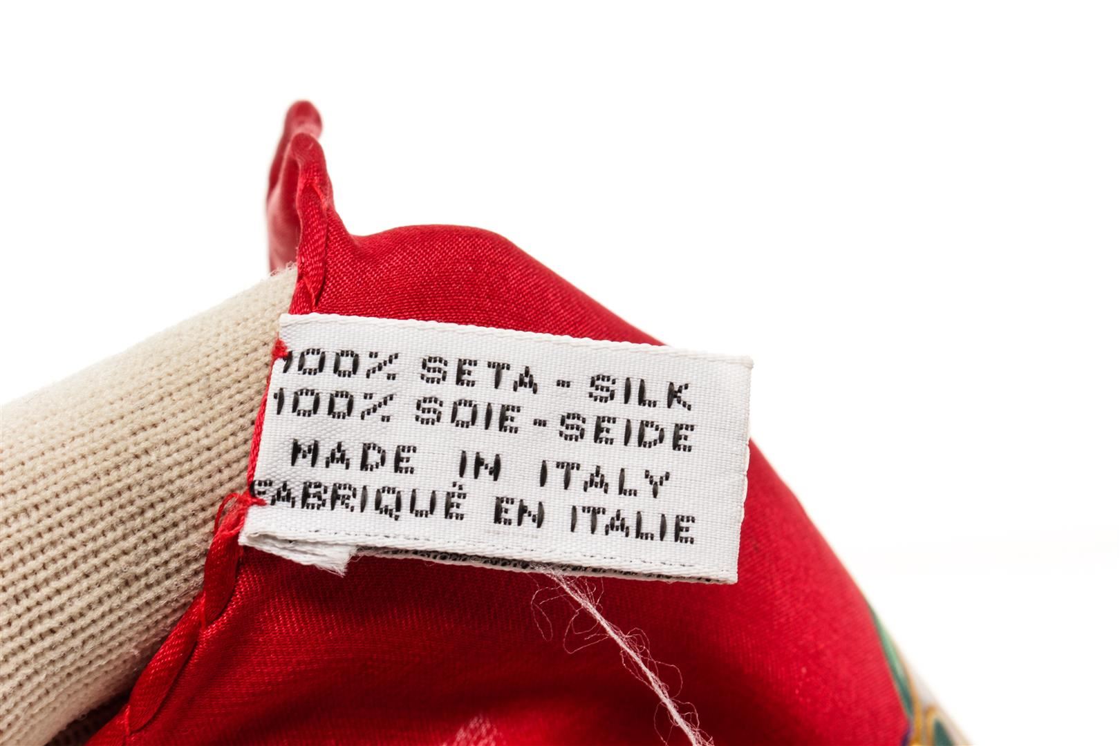 One Hermes Red Gold Silk Scarf. Item is sold AS-IS. All available information is listed in the description and shown in the photo. Green Gold Silk