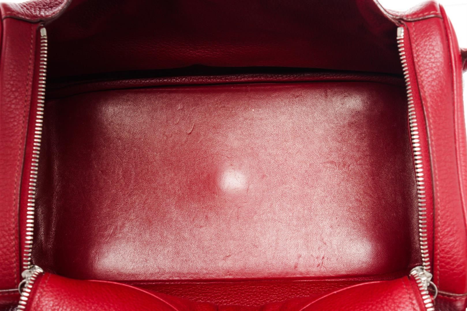 One Hermes Red Taurillon Clemence Leather Lindy 34 Shoulder Bag. Item is sold AS-IS. All available information is listed in the description and shown in the photo. Hermes Red Taurillon Clemence Leather Lindy 34 Shoulder Bag with leather, gold-tone hardware, trim leather, shoulder strap and zipper closure.