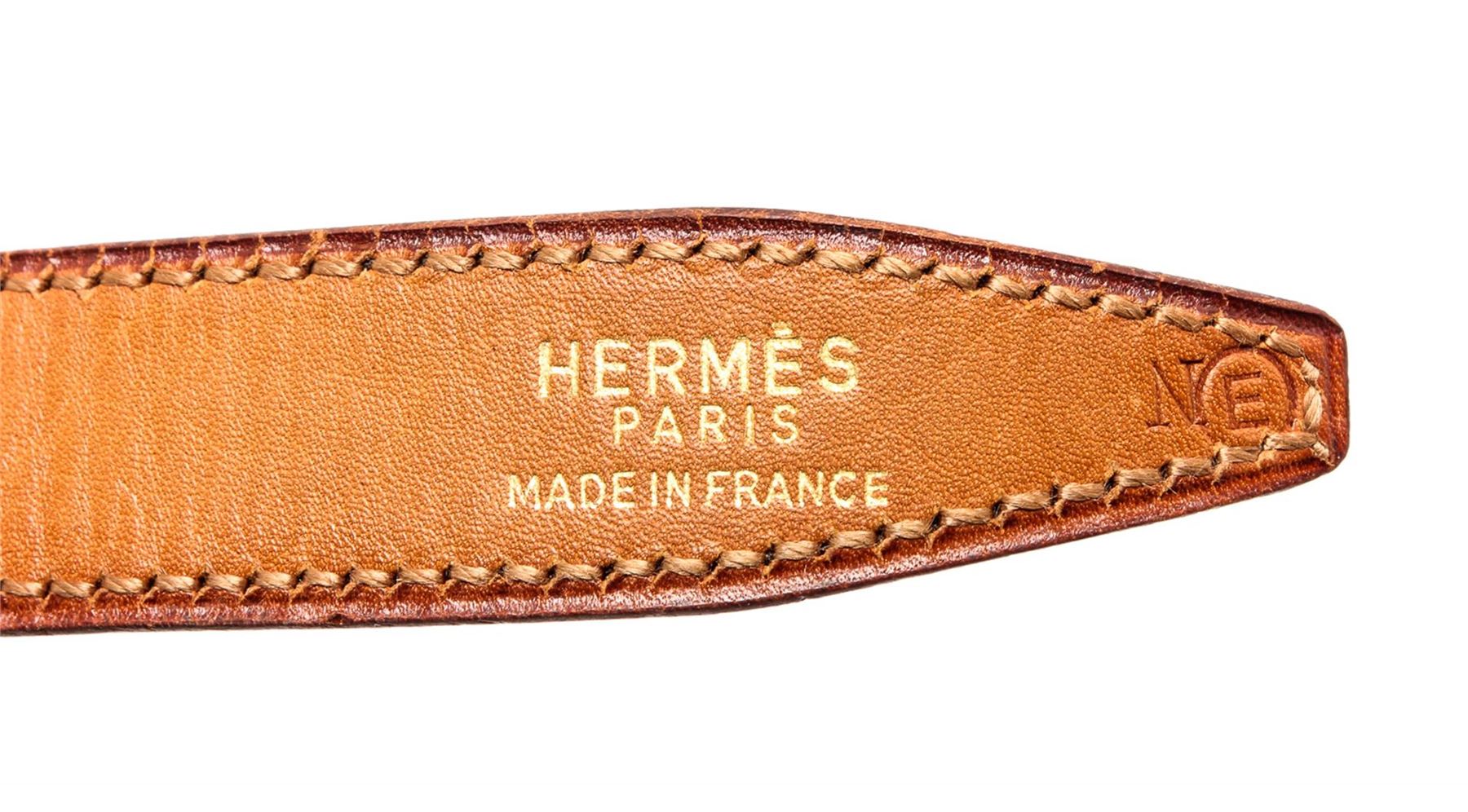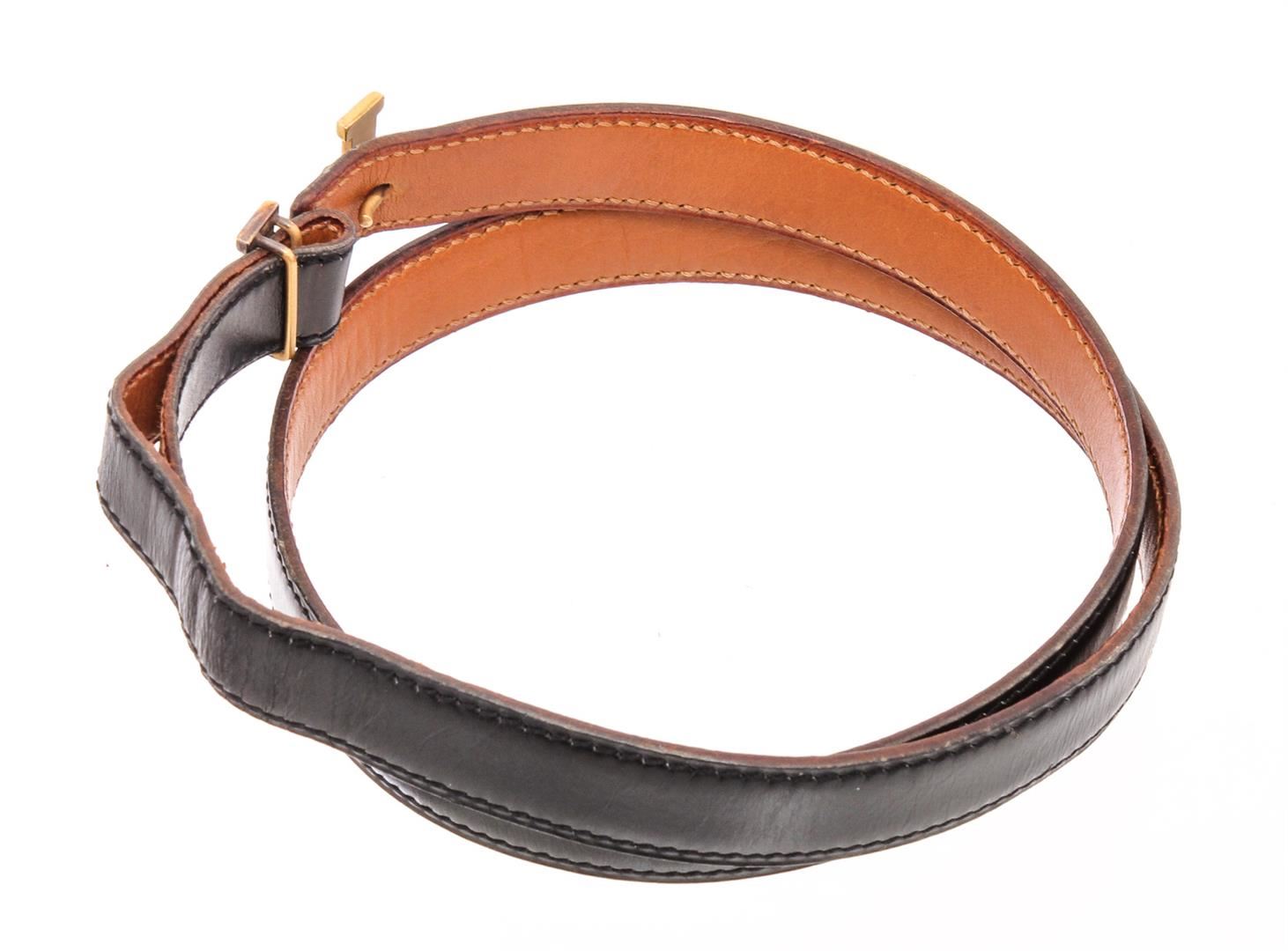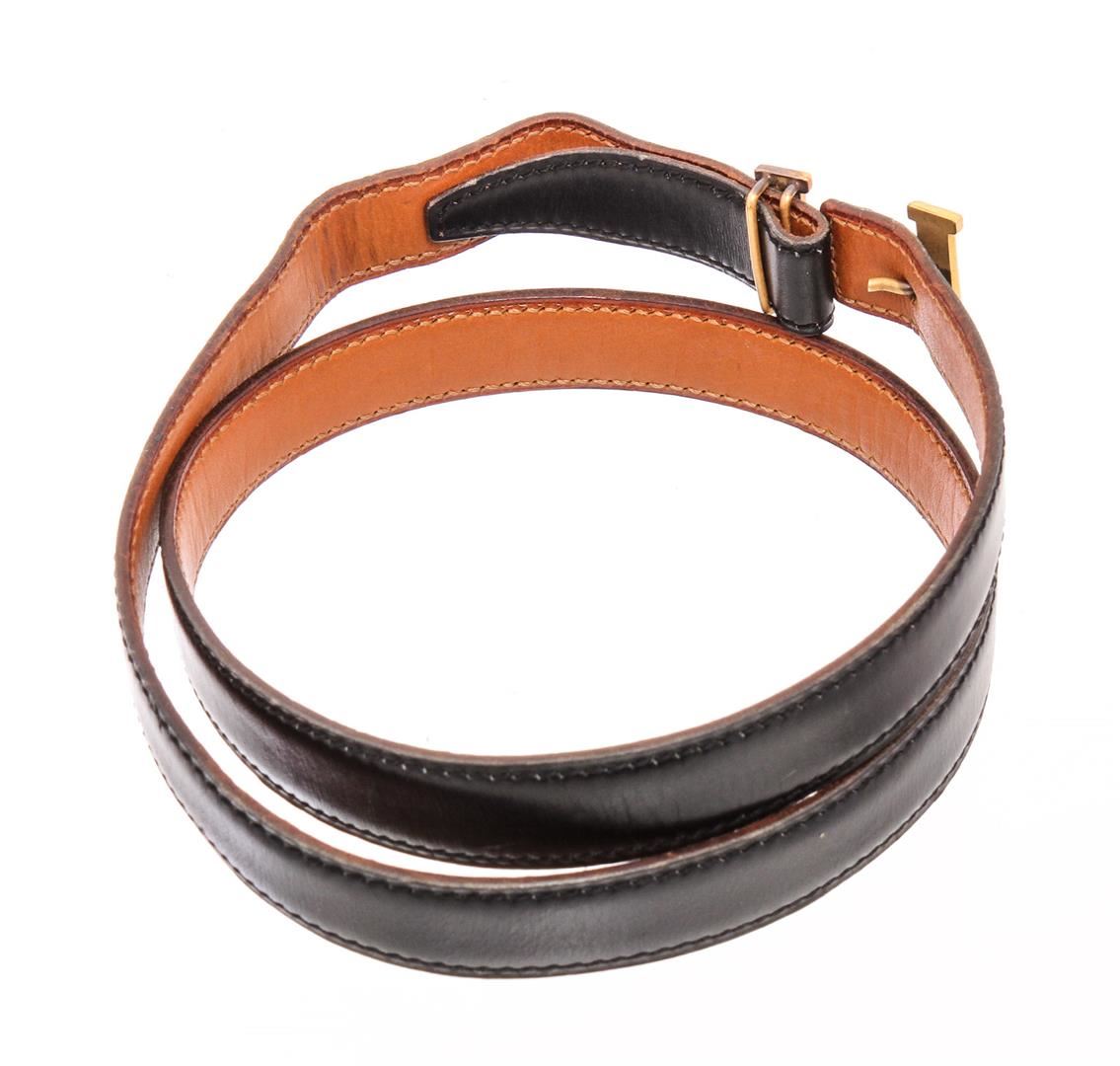 Vintage black and Brown leather Hermes Reversible skinny belt with gold-plated H buckle.