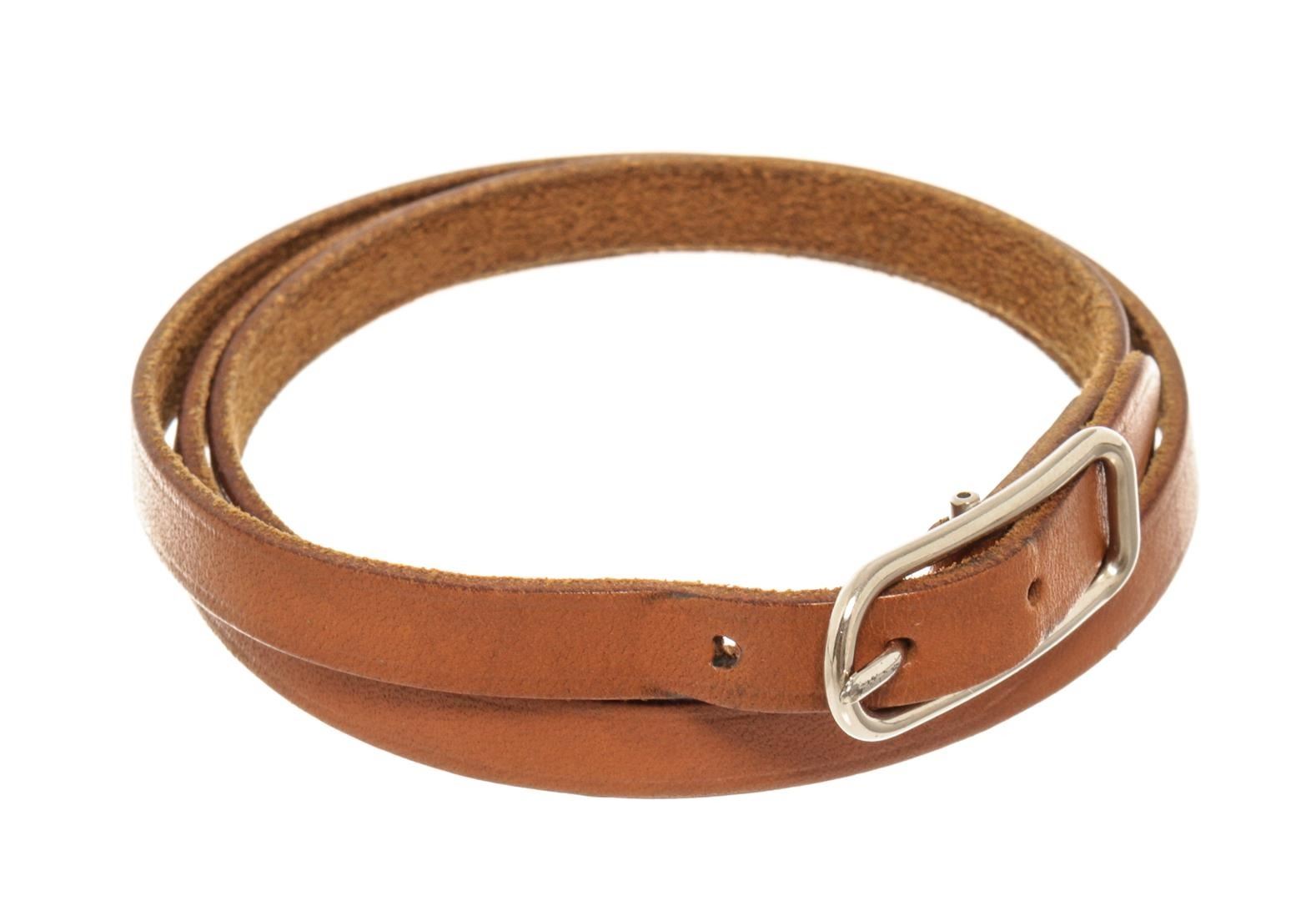 Hermes Vintage Leather Wrap Bracelet. All available information is listed in the description and shown in the photos. Hermes Vintage Leather Wrap Bracelet with palladium-plated, thread & leather, designer size m, Inside Circumference 6.5-7", Width 0.3" / Width : 0.76 Cm