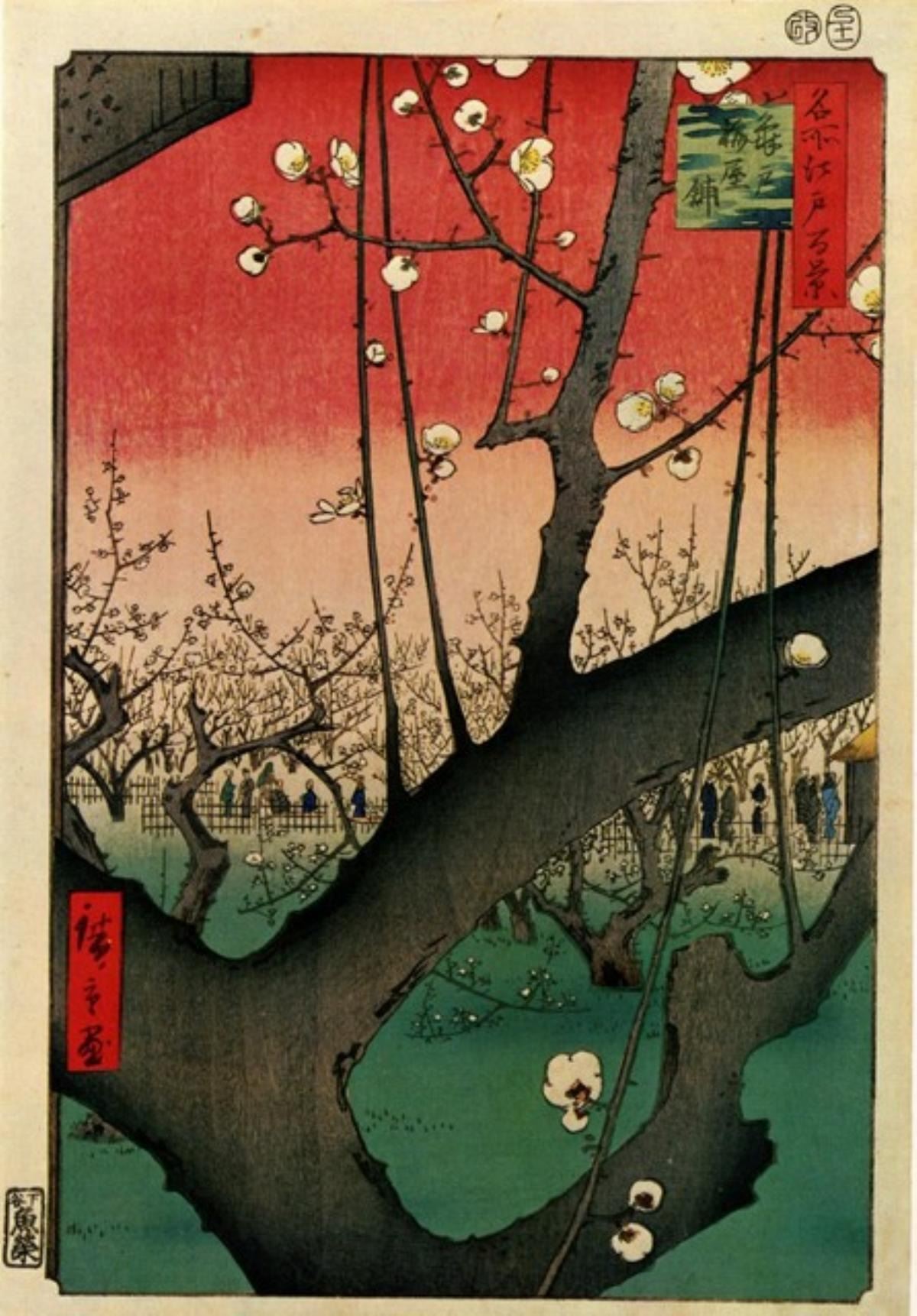 Artist: Utagawa Hiroshige - Title: Blooming Trees - Medium: Fine Art Giclee on Canvas - Image Size: Approximately 32 inches x 21 inches - Unframed on Unstretched Canvas - Biography: (1797 - 12 October 1858) Hiroshige 's print s convey the beauty of Japan and provide insight into the everyday life of its citizens during the Edo period. The appeal of his tender, lyrical landscapes was not restricted to the Japanese audience.Hiroshige 's work had a profound influence on the Impressionists and Post-Impressionists of Europe: Toulouse-Lautrec was fascinated withHiroshige 's daring diagonal compositions and inventive use of perspective, while Van Gogh literally copied two ofHiroshig's prints from the famous series, 100 Famous Views of Edo in oil paint. - The borders may not be even inHiroshig's images. Please refer to the image.