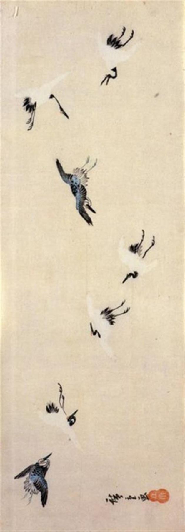 Artist: Utagawa Hiroshige - Title: Cranes Flying - Medium: Fine Art Giclee on Canvas - Image Size: Approximately 32 inches x 11 inches - Unframed on Unstretched Canvas - Biography: (1797 - 12 October 1858) Hiroshige 's print s convey the beauty of Japan and provide insight into the everyday life of its citizens during the Edo period. The appeal of his tender, lyrical landscapes was not restricted to the Japanese audience.Hiroshige 's work had a profound influence on the Impressionists and Post-Impressionists of Europe: Toulouse-Lautrec was fascinated withHiroshige 's daring diagonal compositions and inventive use of perspective, while Van Gogh literally copied two ofHiroshig's prints from the famous series, 100 Famous Views of Edo in oil paint. - The borders may not be even inHiroshig's images. Please refer to the image.