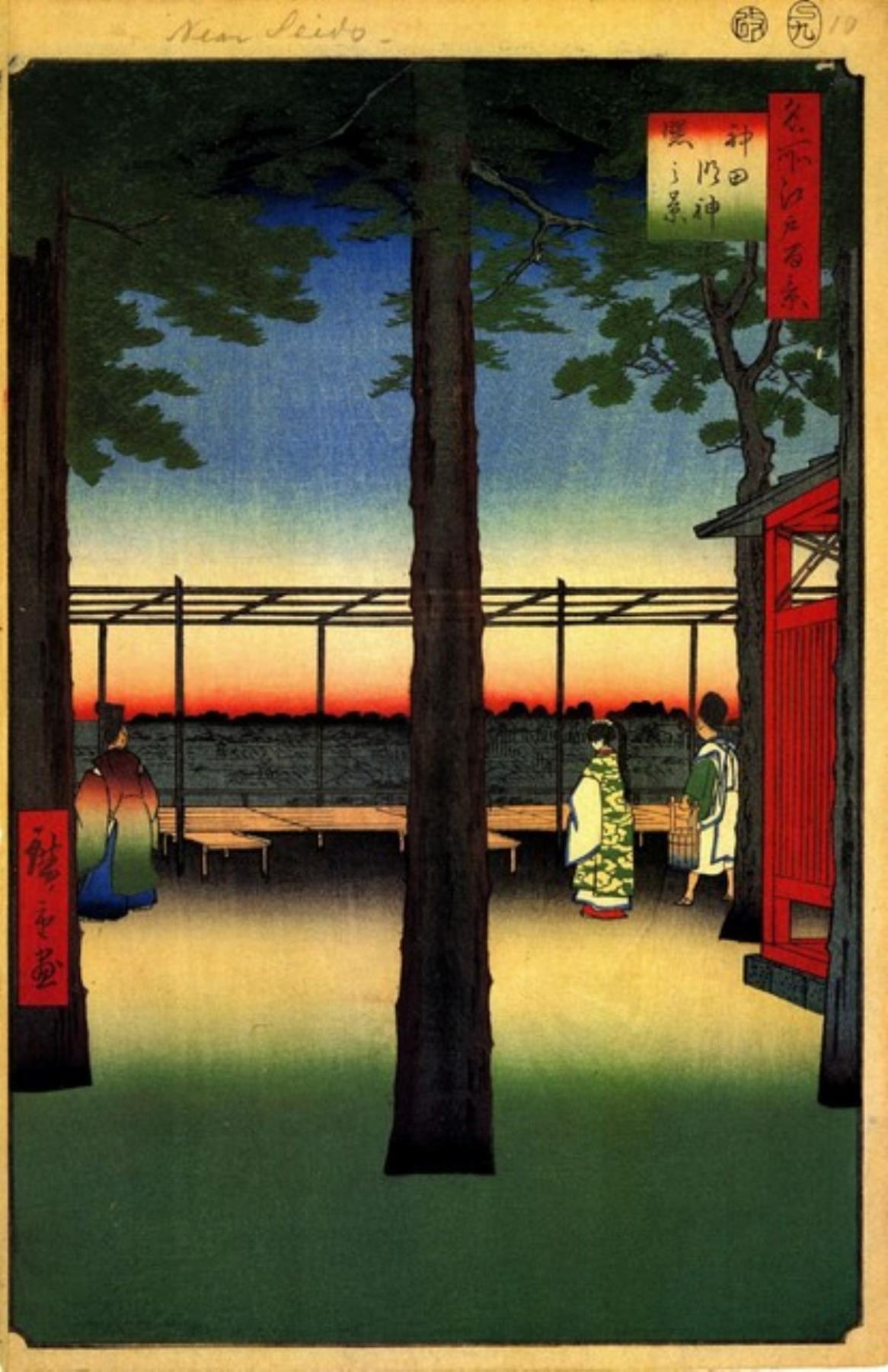 Artist: Utagawa Hiroshige - Title: Dawn at Kanda Myojin Shrine - Medium: Fine Art Giclee on Canvas - Image Size: Approximately 20 inches x 13 inches - Unframed on Unstretched Canvas - Biography: (1797 - 12 October 1858) Hiroshige 's prints convey the beauty of Japan and provide insight into the everyday life of its citizens during the Edo period. The appeal of his tender, lyrical landscapes was not restricted to the Japanese audience.Hiroshige 's work had a profound influence on the Impressionists and Post-Impressionists of Europe: Toulouse-Lautrec was fascinated withHiroshige 's daring diagonal compositions and inventive use of perspective, while Van Gogh literally copied two ofHiroshig's prints from the famous series, 100 Famous Views of Edo in oil paint. - The borders may not be even inHiroshig's images. Please refer to the image.