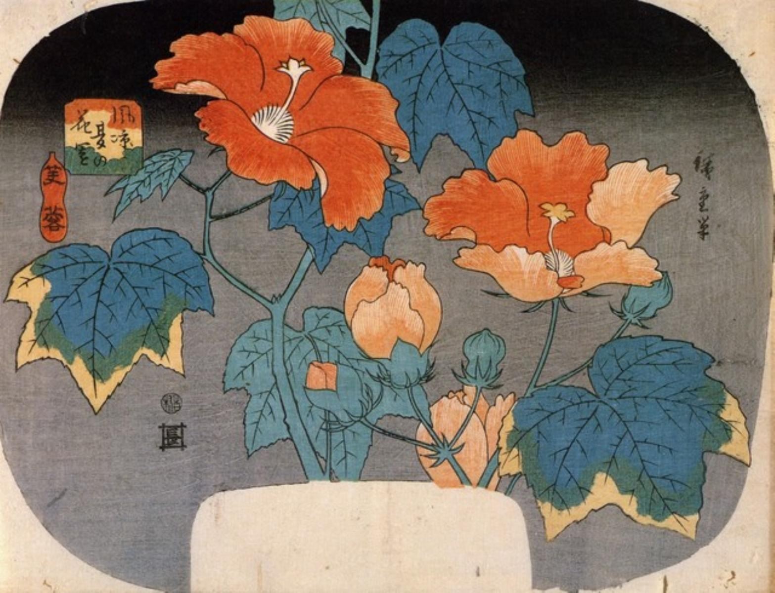Artist: Utagawa Hiroshige - Title: Hibiscus - Medium: Fine Art Giclee on Canvas - Image Size: Approximately 15.5 inches x 20 inches - Unframed on Unstretched Canvas - Biography: (1797 - 12 October 1858) Hiroshige 's print s convey the beauty of Japan and provide insight into the everyday life of its citizens during the Edo period. The appeal of his tender, lyrical landscapes was not restricted to the Japanese audience.Hiroshige 's work had a profound influence on the Impressionists and Post-Impressionists of Europe: Toulouse-Lautrec was fascinated withHiroshige 's daring diagonal compositions and inventive use of perspective, while Van Gogh literally copied two ofHiroshig's prints from the famous series, 100 Famous Views of Edo in oil paint. - The borders may not be even inHiroshig's images. Please refer to the image.