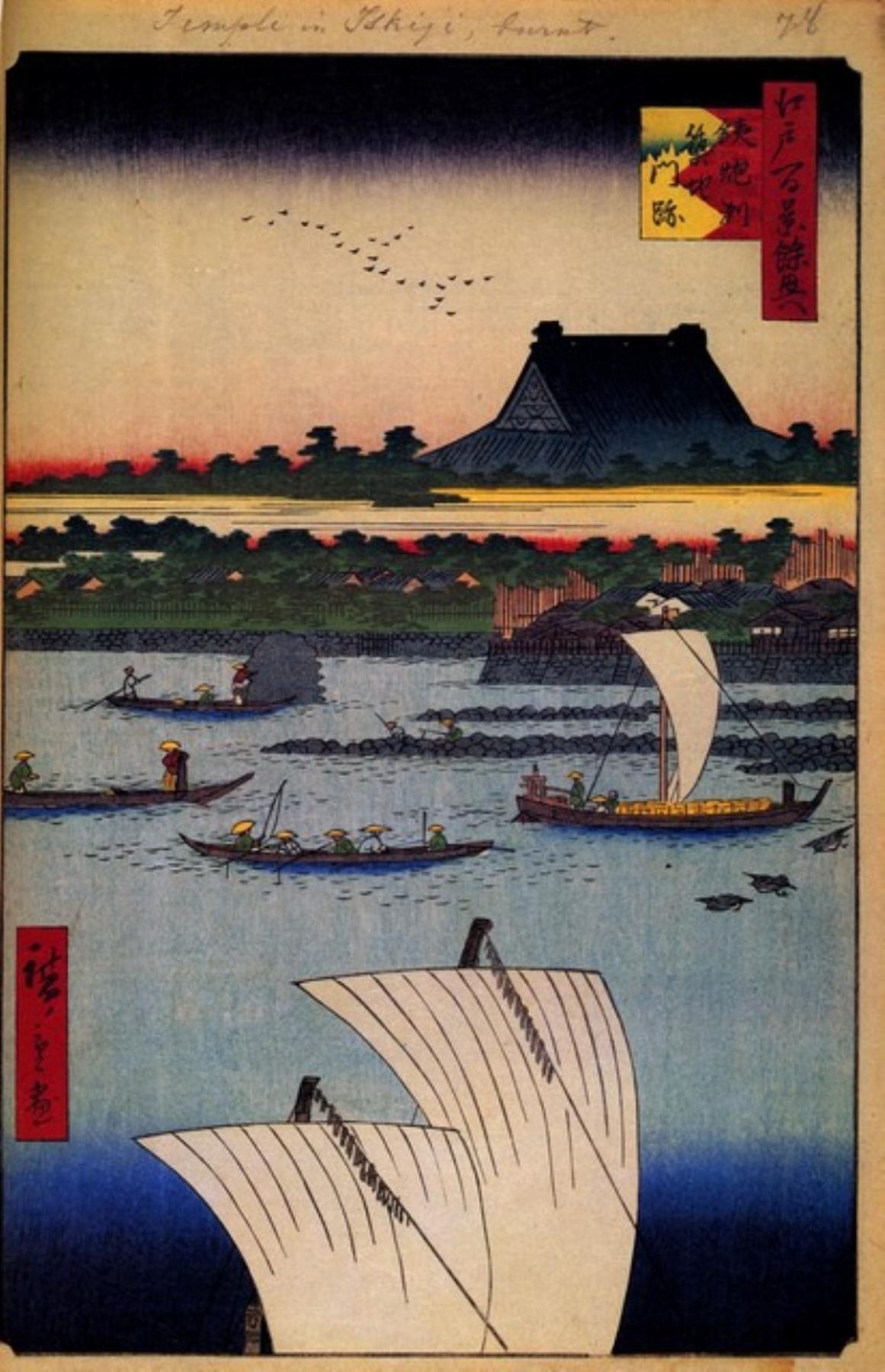 Artist: Utagawa Hiroshige - Title: Honganji Temple - Medium: Fine Art Giclee on Canvas - Image Size: Approximately 20 inches x 12.75 inches - Unframed on Unstretched Canvas - Biography: (1797 - 12 October 1858) Hiroshige 's prints convey the beauty of Japan and provide insight into the everyday life of its citizens during the Edo period. The appeal of his tender, lyrical landscapes was not restricted to the Japanese audience.Hiroshige 's work had a profound influence on the Impressionists and Post-Impressionists of Europe: Toulouse-Lautrec was fascinated withHiroshige 's daring diagonal compositions and inventive use of perspective, while Van Gogh literally copied two ofHiroshig's prints from the famous series, 100 Famous Views of Edo in oil paint. - The borders may not be even inHiroshig's images. Please refer to the image.