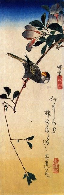 Artist: Utagawa Hiroshige - Title: Java Sparrow and Magnolia - Medium: Fine Art Giclee on Canvas - Image Size: Approximately 20 inches x 6.5 inches - Unframed on Unstretched Canvas - Biography: (1797 - 12 October 1858) Hiroshige 's print s convey the beauty of Japan and provide insight into the everyday life of its citizens during the Edo period. The appeal of his tender, lyrical landscapes was not restricted to the Japanese audience.Hiroshige 's work had a profound influence on the Impressionists and Post-Impressionists of Europe: Toulouse-Lautrec was fascinated withHiroshige 's daring diagonal compositions and inventive use of perspective, while Van Gogh literally copied two ofHiroshig's prints from the famous series, 100 Famous Views of Edo in oil paint. - The borders may not be even inHiroshig's images. Please refer to the image.