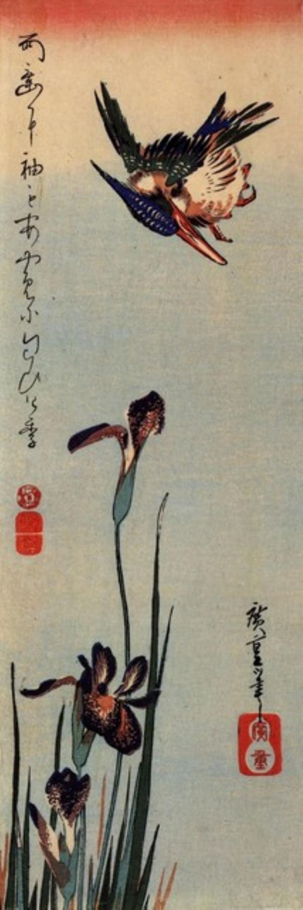 Artist: Utagawa Hiroshige - Title: Kingfisher with Lilies - Medium: Fine Art Giclee on Canvas - Image Size: Approximately 32 inches x 10.75 inches - Unframed on Unstretched Canvas - Biography: (1797 - 12 October 1858) Hiroshige 's print s convey the beauty of Japan and provide insight into the everyday life of its citizens during the Edo period. The appeal of his tender, lyrical landscapes was not restricted to the Japanese audience.Hiroshige 's work had a profound influence on the Impressionists and Post-Impressionists of Europe: Toulouse-Lautrec was fascinated withHiroshige 's daring diagonal compositions and inventive use of perspective, while Van Gogh literally copied two ofHiroshig's prints from the famous series, 100 Famous Views of Edo in oil paint. - The borders may not be even inHiroshig's images. Please refer to the image.