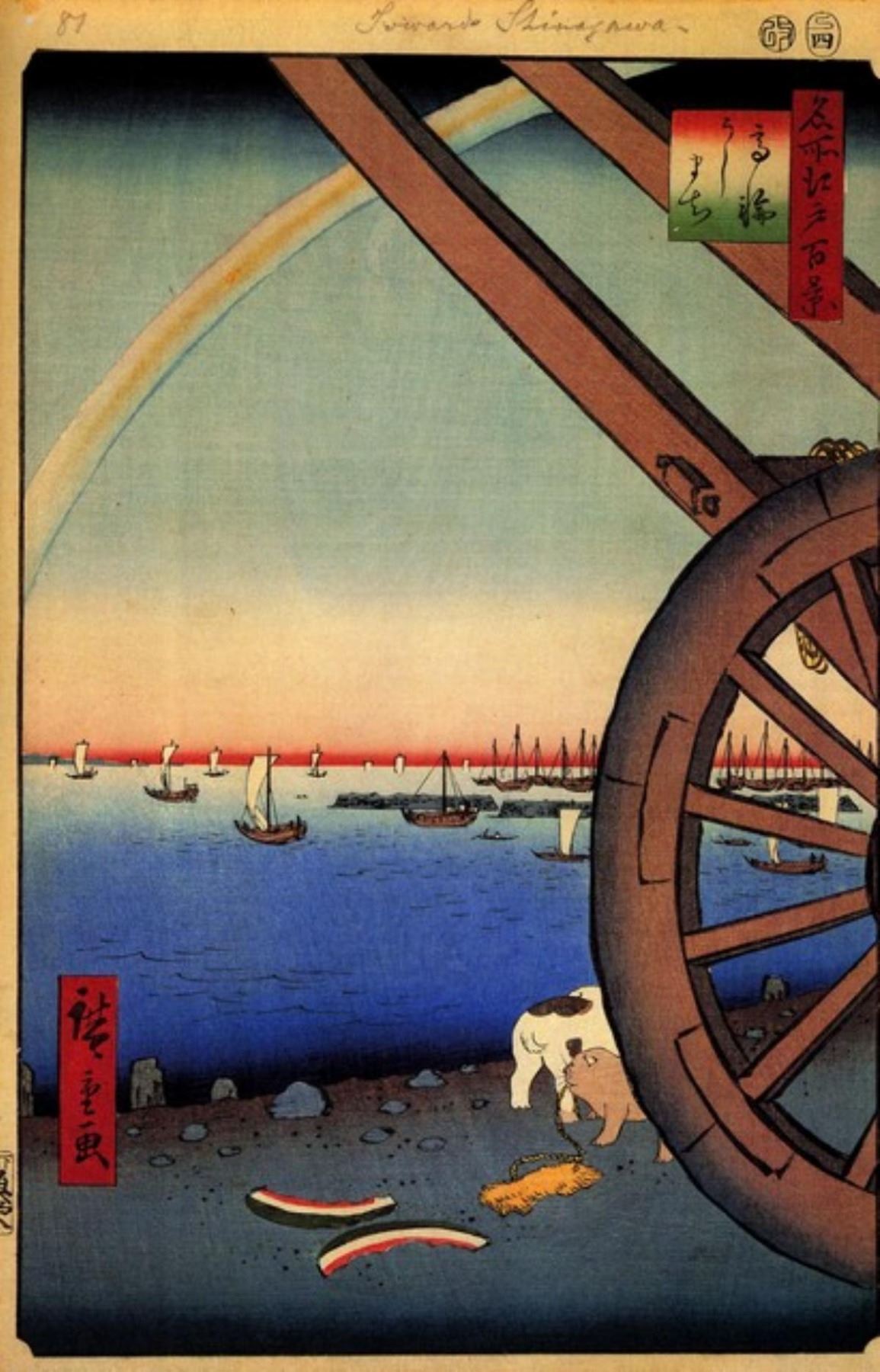 Artist: Utagawa Hiroshige - Title: Ushimaci, Takanaw - Medium: Fine Art Giclee on Canvas - Image Size: Approximately 20 inches x 13 inches - Unframed on Unstretched Canvas - Biography: (1797 - 12 October 1858) Hiroshige 's prints convey the beauty of Japan and provide insight into the everyday life of its citizens during the Edo period. The appeal of his tender, lyrical landscapes was not restricted to the Japanese audience.Hiroshige 's work had a profound influence on the Impressionists and Post-Impressionists of Europe: Toulouse-Lautrec was fascinated withHiroshige 's daring diagonal compositions and inventive use of perspective, while Van Gogh literally copied two ofHiroshig's prints from the famous series, 100 Famous Views of Edo in oil paint. - The borders may not be even inHiroshig's images. Please refer to the image.