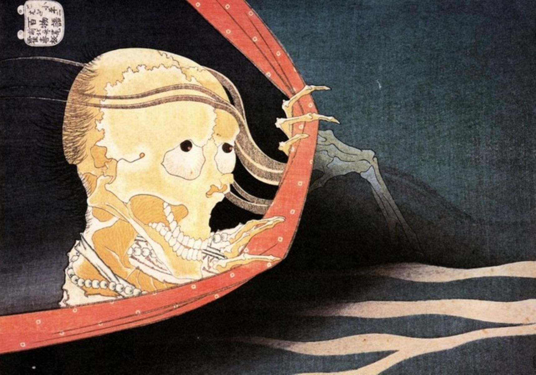 Artist: Katsushika Hokusai - Title: Weird Skeleton - Medium: Fine Art Giclee on Canvas - Image Size: Approximately 14 inches x 20 inches - Unframed on Unstretched Canvas - Biography: ( c. 31 October 1760 - 10 May 1849), known simply as Hokusai, was a Japanese artist, ukiyo-e painter and printmaker of the Edo period. Born in Edo (now Tokyo), Hokusai is best known as author of the woodblock printseries Thirty-six Views of Mount Fuji which includes the internationally iconic print, The Great Wave off Kanagawa.