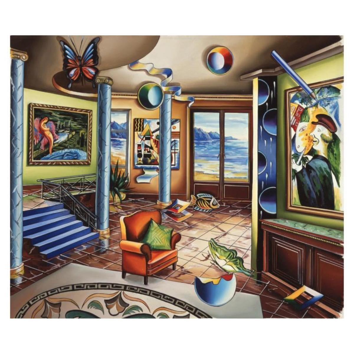 "Homage to Chagall" is a limited edition Giclee on Canvas by Alexander Astahov. The piece is numbered, hand signed by the artist, and come with a letter of authenticity. Measures approximately 20" x 24".