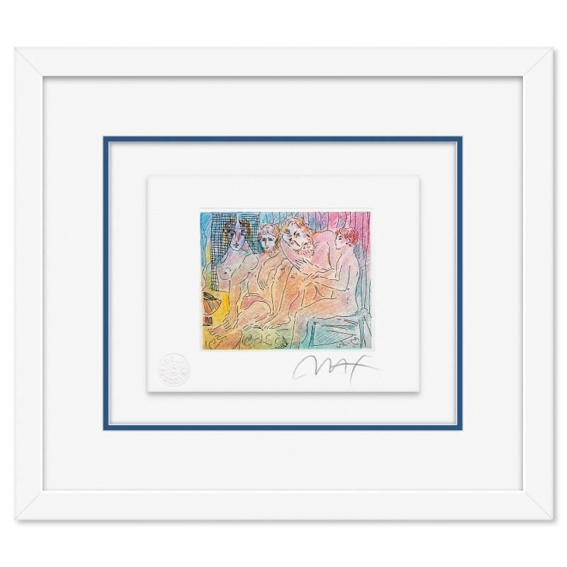 "Homage to Picasso Vol. 3 #IX" is a limited edition lithograph on paper by Peter Max, numbered and hand signed by the artist. This piece comes framed. Includes Certificate of Authenticity from Peter Max Studios. Measures approx. 14" x 15" (frame), 4" x 5" (image).