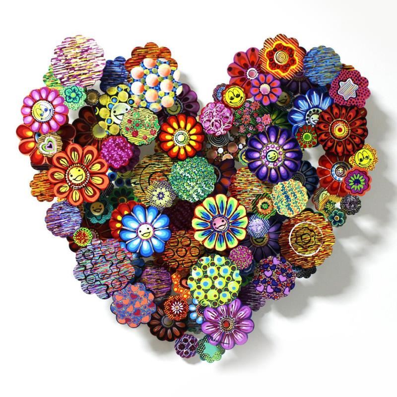 "Hommage to Takashi" is an Original Painting on Cutout Steel by Patricia Govezensky. Hand signed by the artist this piece comes with a certificate of aucthenticity. Measures approximately 25"" x 25"".