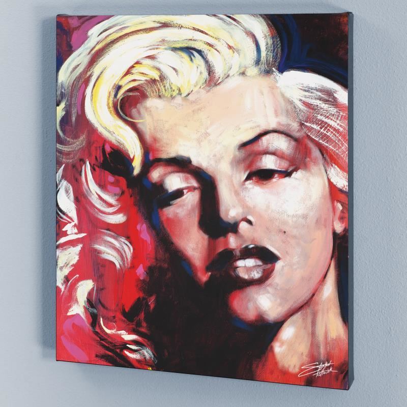 With bright colors and expressive lines, Stephen Fishwick puts a unique spin on pop culture portraits. "Hot!" is a limited edition giclee on stretched canvas, numbered and bears the artist's authorized signature. This piece comes gallery wrapped! Includes Letter of Authenticity. Measures approx. 16" x 20" (image).
