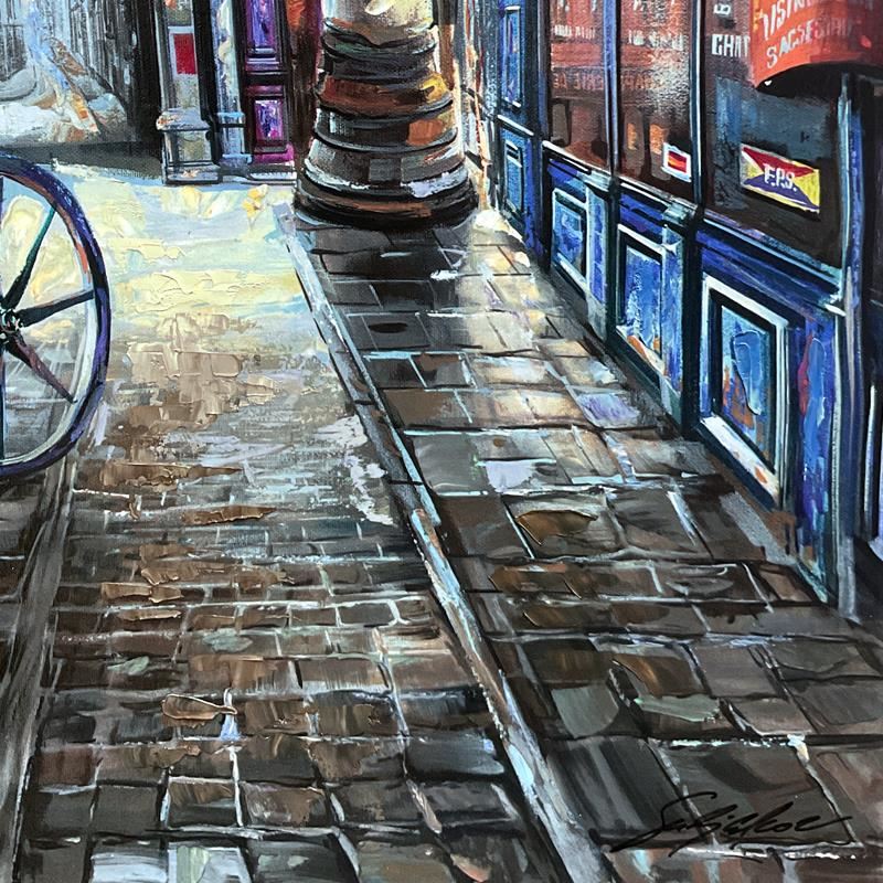 "Hotel De Chalons Passet" is a hand embellished limited edition printer's proof on stretched canvas by Vadik Suljakov, numbered inverso and hand signed by the artist. Includes Letter of Authenticity. Measures approx. 36" x 30" (image). There may be minor wear (cracking and scuffs) on the corners and edges that may be concealed when framed.