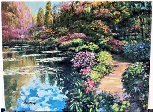 Howard Behrens "GIVERNY PATH (from THE "TRIBUTE TO MONET" COLLECTION)" Heavily Embellished Hand Signed and Numbered LE Stretched Canvas Giclee, Publisher's Certificate of Authenticity Dimensions: 24 x 32 inches (Note: edition number received may differ from photo)