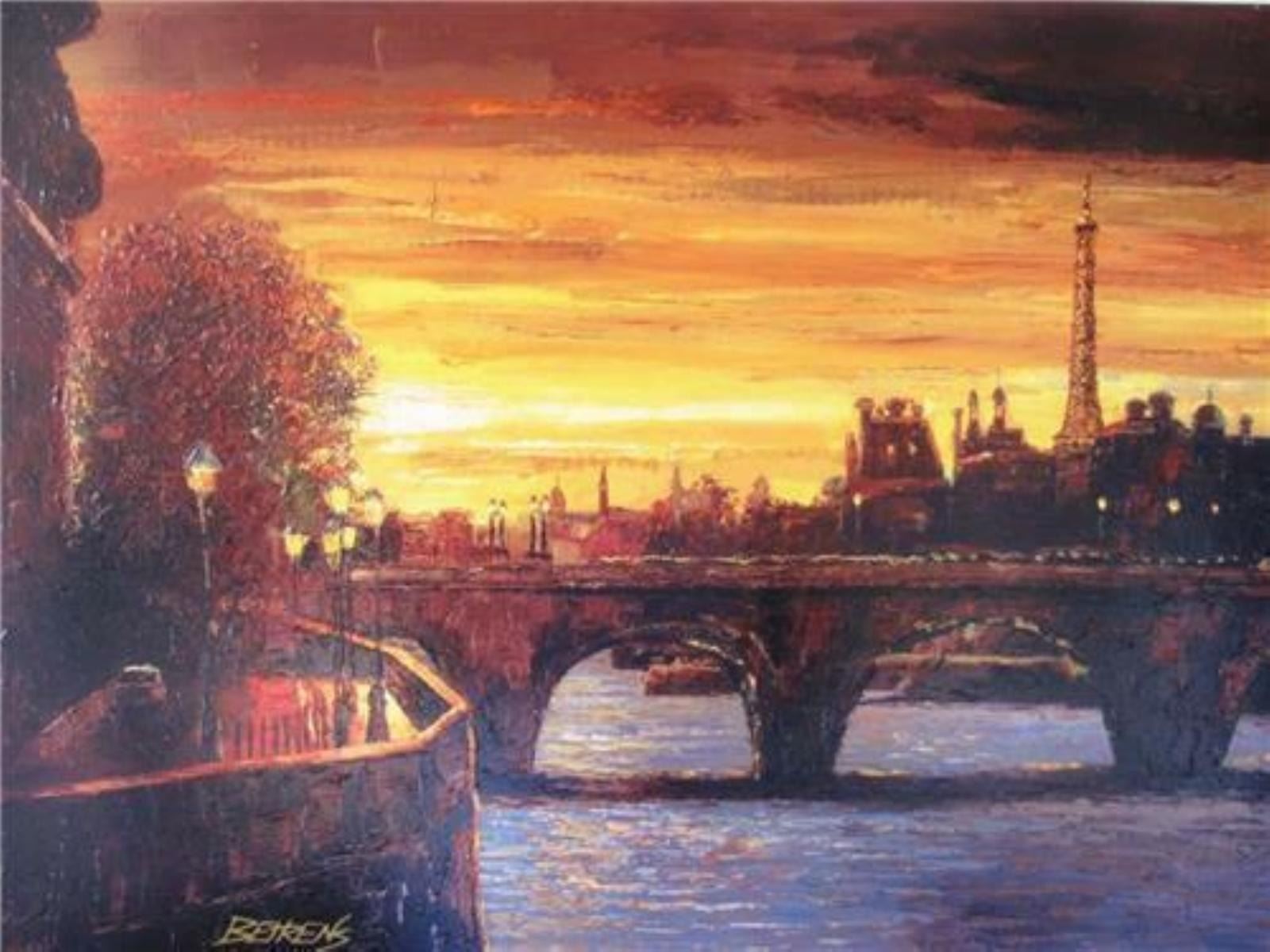Howard Behrens "TWILIGHT ON THE SEINE, II" This particular piece is from the 2010 "Five Carat Diamond" collection and was a special edition for an Art Connoisseur cruise. The Five Carat Diamond Collection is considered by far the top and highest value of any of the Behrens embellished Giclees. Please note that other listings with the same title may have not come from this particular and highly sought after edition. Intensely texturized/embellished, almost looks 3-D. It is almost indistinguishable from the original oil (except for the edition number) Medium: Hand Signed Limited Edition Heavily Embellished Giclee on Stretched Canvas Dimensions: 36 x 24 inches NOTE: Edition number may differ from the one pictured.
