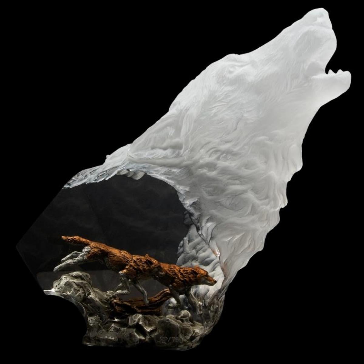 Hunter's Serenade by Cantrell, Kitty. "Hunter's Serenade" is a limited edition mixed media lucite sculpture by Kitty Cantrell. Engraved with the artists signature and number, this piece comes with a certificate of authenticity. Measures approximately 9" x 9" x 4".