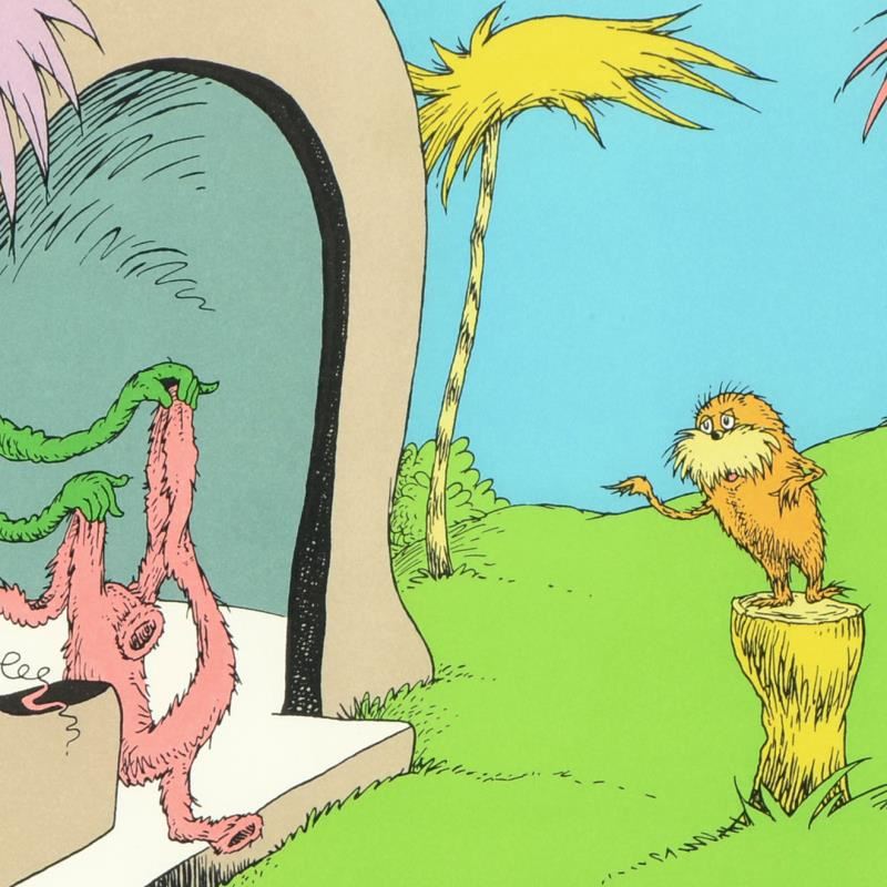 "I Am The Lorax, I Speak For The Trees" by Dr Seuss is an estate signed limited edition lithograph on paper. Numbered from an edition of 2500 pieces, it is accompanied by a Letter of Authenticity. Measures approximately 17..5" x 21.5" (Framed), 16" x 12" (image).