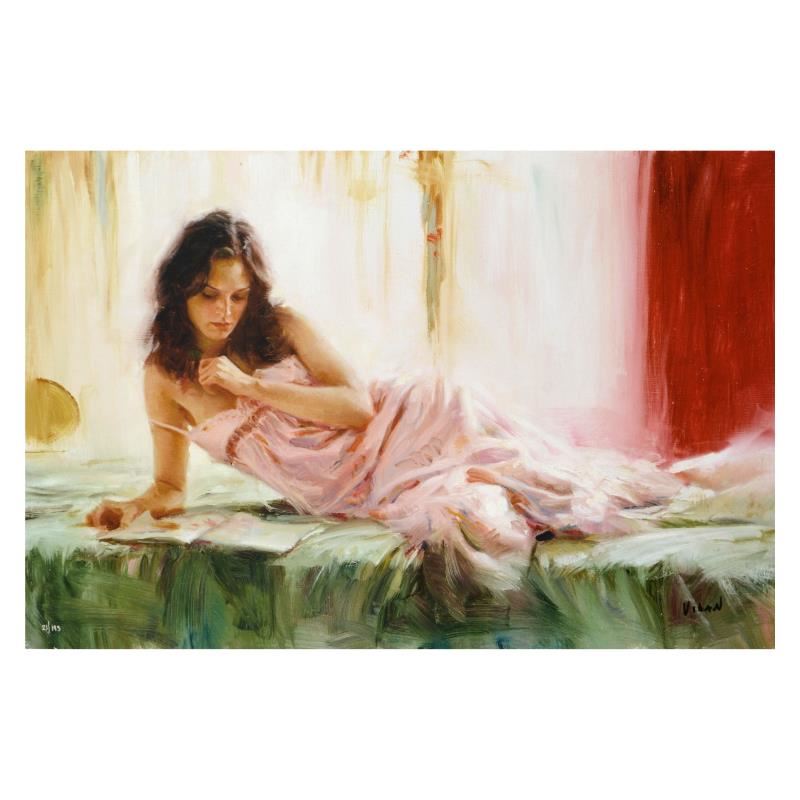 "In Repose" is a limited edition giclee on canvas by Vidan, nephew and protege of Pino (1939-2010). Numbered and hand signed by the artist. Includes Certificate of Authenticity! Measures approx. 30" x 20" (image).