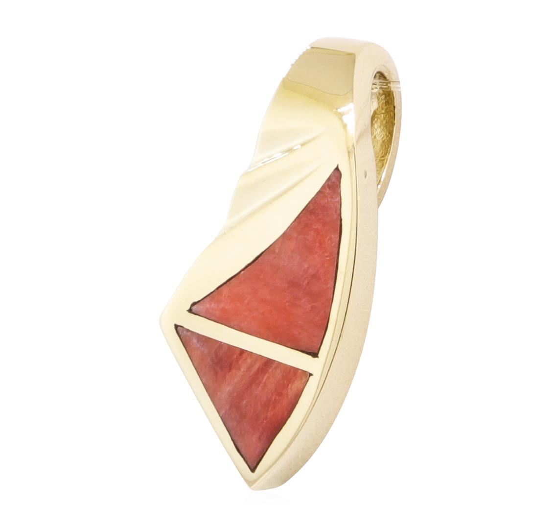 One pendant featuring: 14KT yellow gold weighing 6.3 grams containing two pieces of inlaid orange agate.