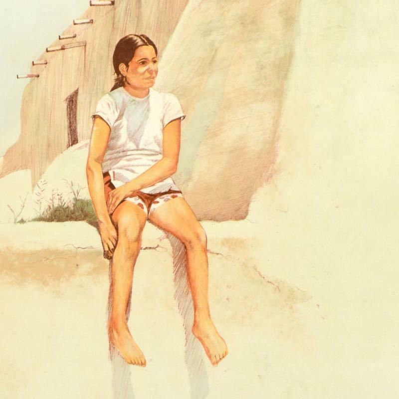 "Isleta Indian Girl" is a limited edition lithograph on paper by William Nelson, numbered and hand signed by the artist! Measures approx. 22" x 29" (with border); 18" x 25" (image).
