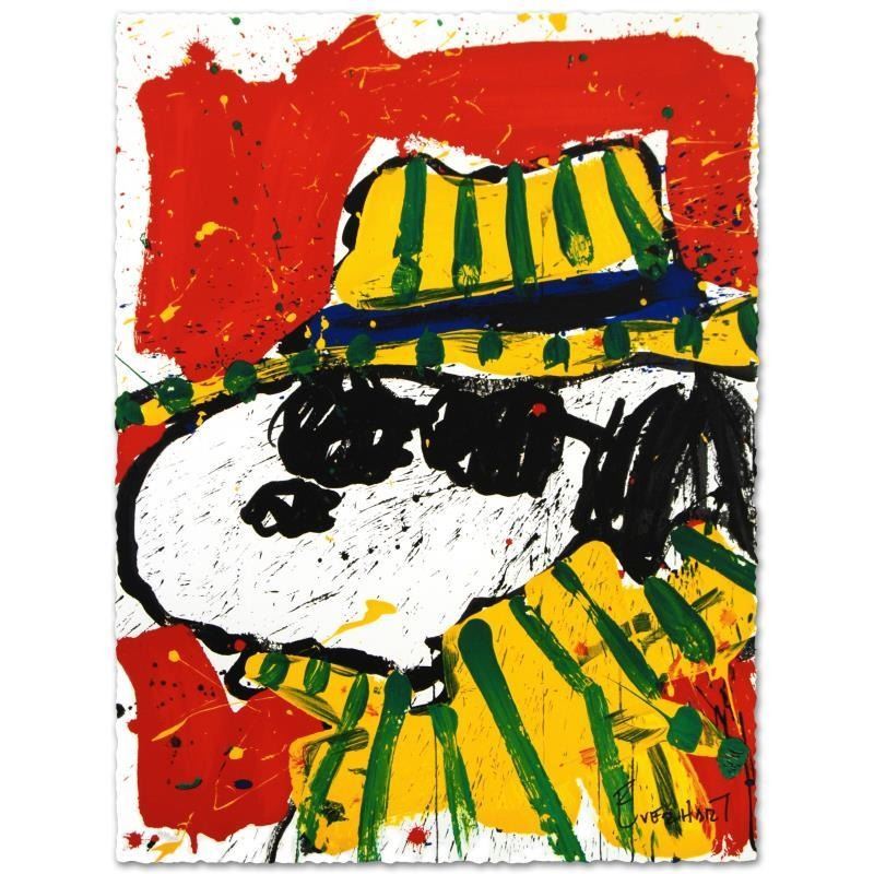 "It's the Hat That Makes the Dude" is a limited edition hand pulled original lithograph on museum quality deckle-edge paper, numbered and hand signed by Tom Everhart. This is one of the final Everhart editions to be created on a rare, antique Marinoni Voirin lithograph press that dates back to the 1800's. Includes certificate of authenticity. Measures approx. 22.5" x 30" (image only/no border).