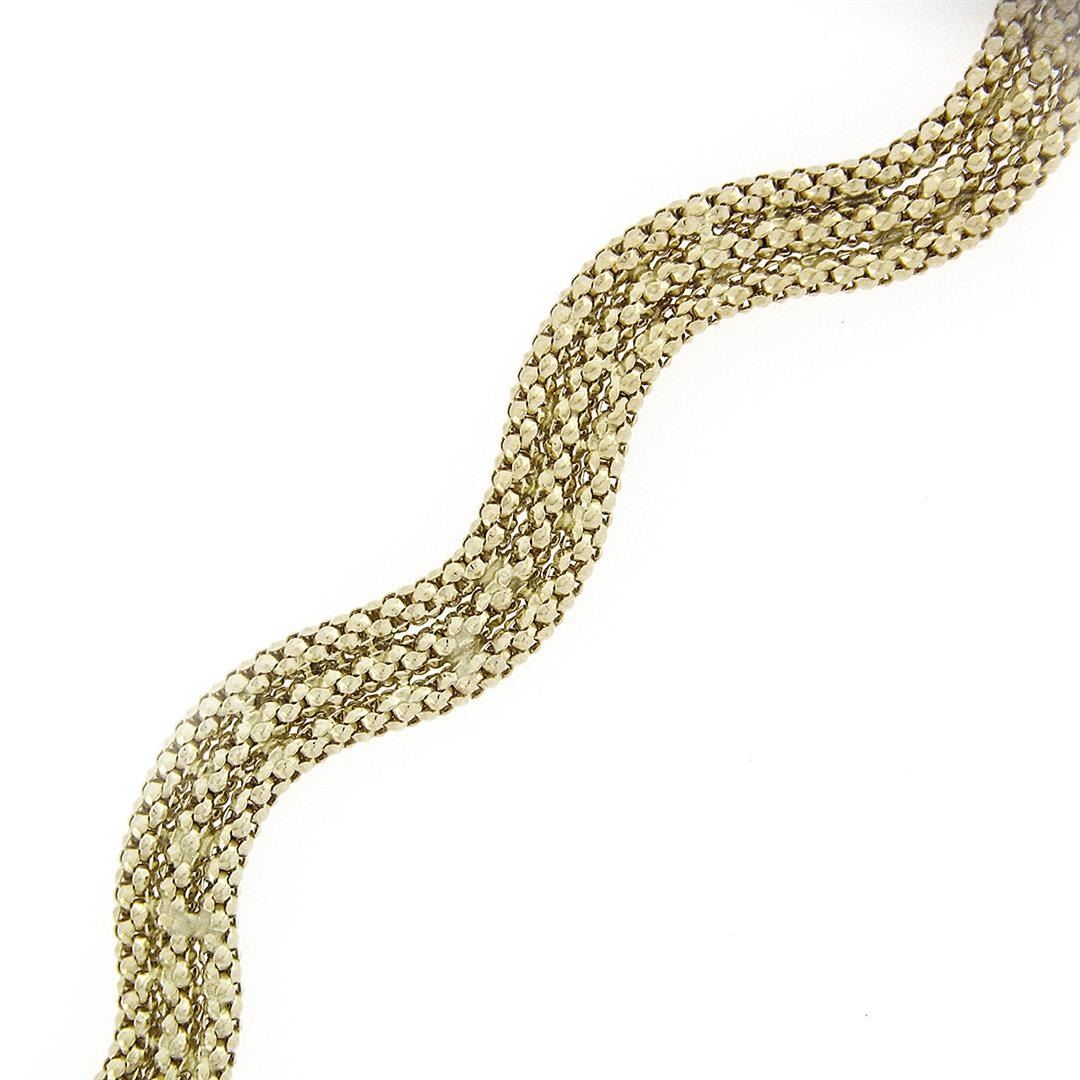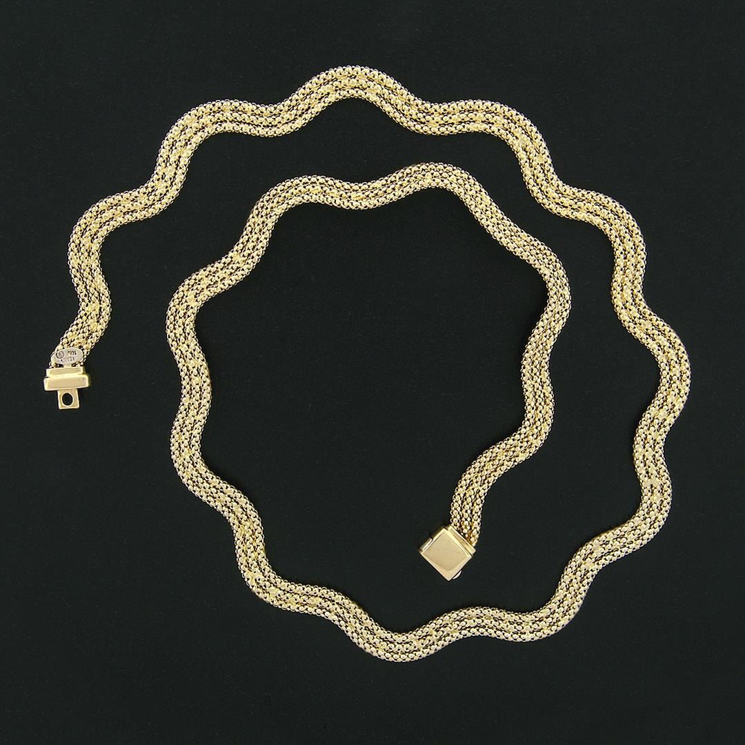 A solid 14k yellow gold 3 row wavy chain link necklace. 17.5 inch popcron link chain, 20.20 grams total weight.