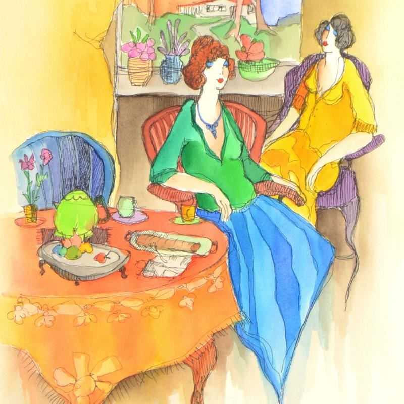 This is an original mixed media watercolor on paper by Itzchak Tarkay (1935-2012), hand signed by the artist. Includes Letter of Authenticity. Measures approx. 22" x 30" (image).