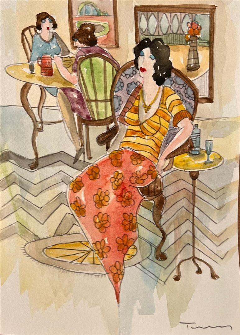 Itzchak Tarkay "Untitled Mini 30" Hand Signed Mixed Media Watercolor on Paper Dimensions: 12 x 9 Inches
