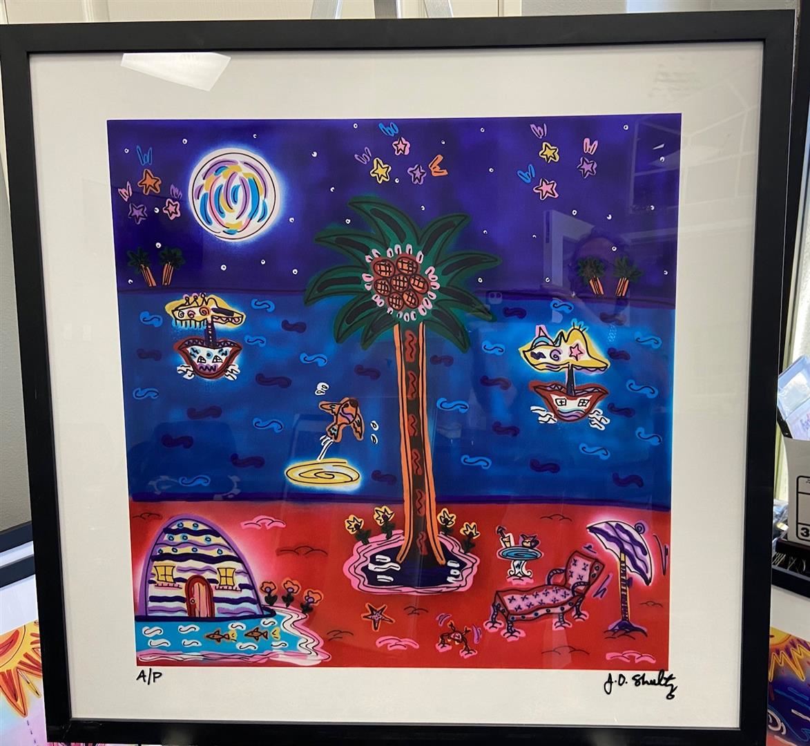 Celebrated artist J.D. Shultz's 33x44" Palm Tree. Framed giclee on plexi, signed, numbered AP.