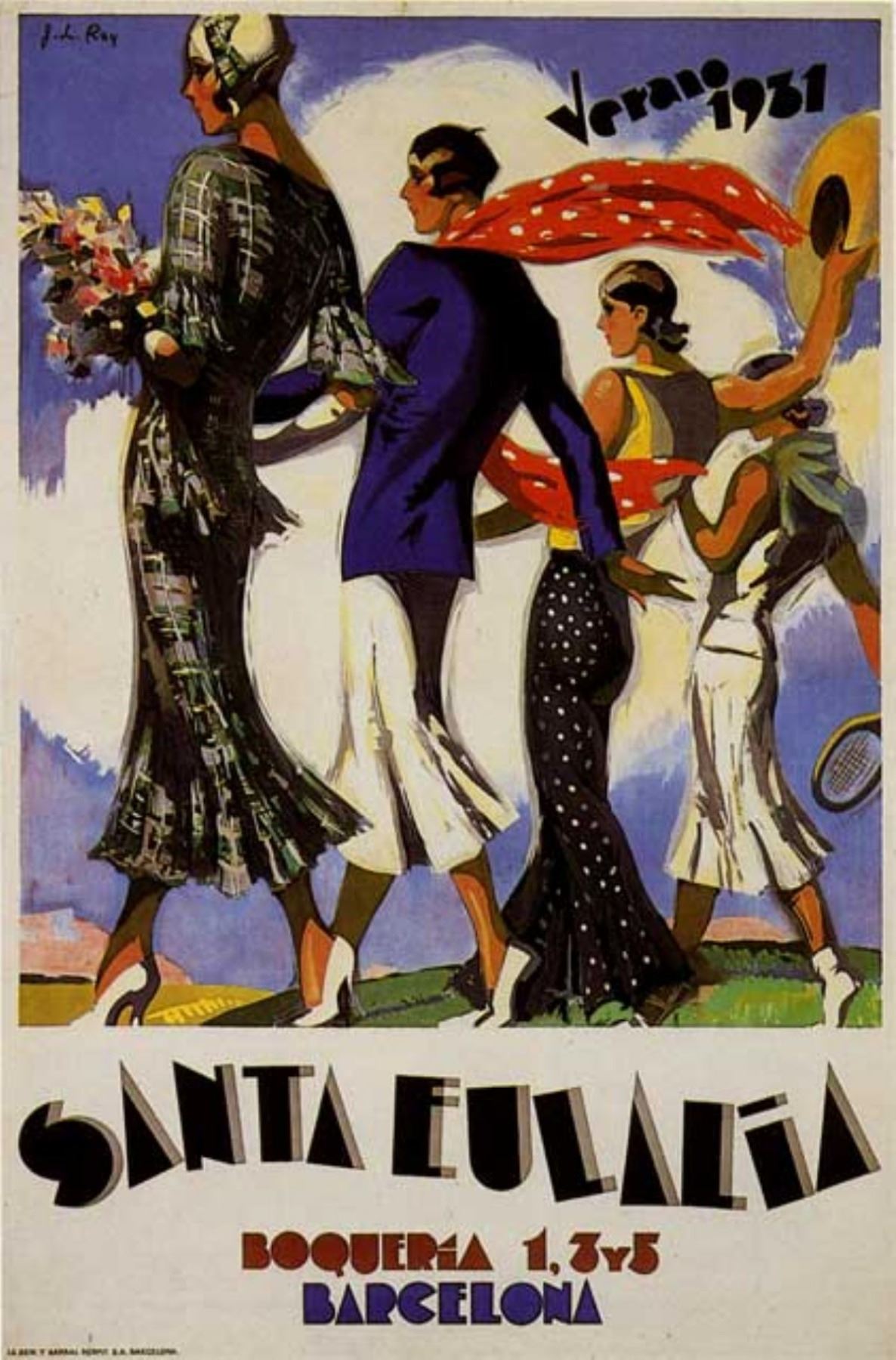 Artist: J L Rey - Title: Verano 1931 Santa Eulalia - Medium: Fine Art Reproduction Giclee on Canvas - Image Size: Approximately 20 inches x 13 inches - Unframed on Unstretched Canvas - Born in Cadiz, Rey Vila studied drawing at the School of Fine Arts Cadiz and Barcelona. He worked as a cartoonist and illustrator for Ford, and collaborates with art magazines as "Nueva Iberia." In 1936, he puts his "drawing" in the service of the social revolution.
