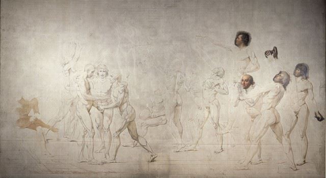 Artist: Jacques-Louis David - Title: The Jeu de Paume Oath - Medium: Fine Art Reproduction Giclee on Canvas - Image Size: Approximately 11 inches x 20 inches - Unframed on Unstretched Canvas - Biography: Jacques-Louis David (30 August 1748 - 29 December 1825) was a French painter in the Neoclassical style, considered to be the preeminent painter of the era. In the 1780s his cerebral brand of history painting marked a change in taste away from Rococo frivolity toward classical austerity and severity and heightened feeling,harmonizing with the moral climate of the final years of the Ancien Regime.