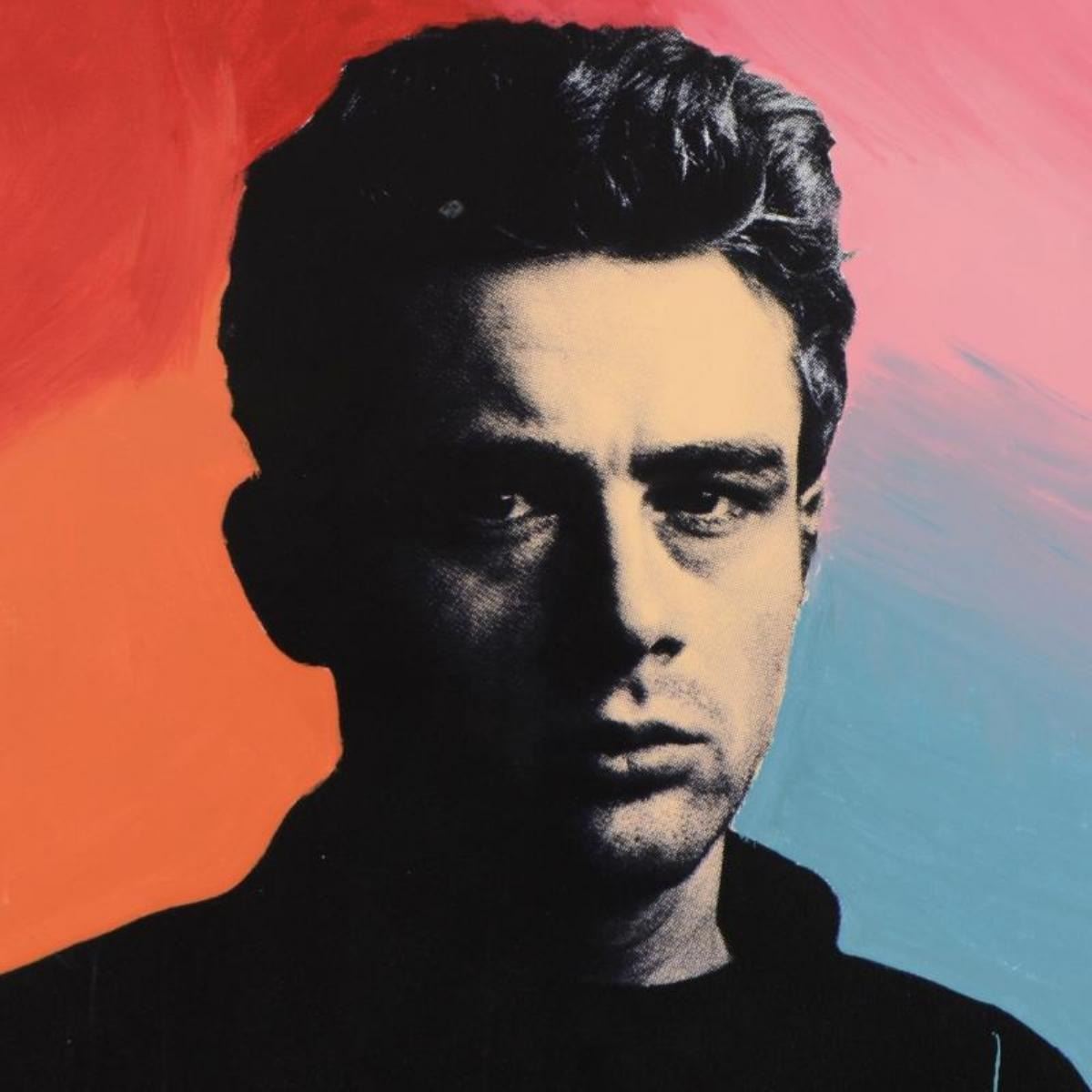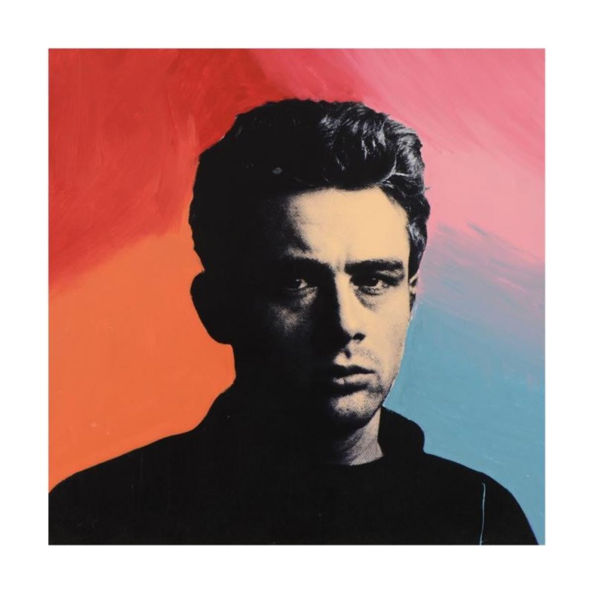 James Dean is a hand painted unique variation hand pulled silkscreen on canvas by Andy Warhol protege Steve Kaufman (1960-2010). This piece is numbered 24/50 and hand signed inverso. Includes letter of authenticity. Measures approx. 24" x 24" (image).
