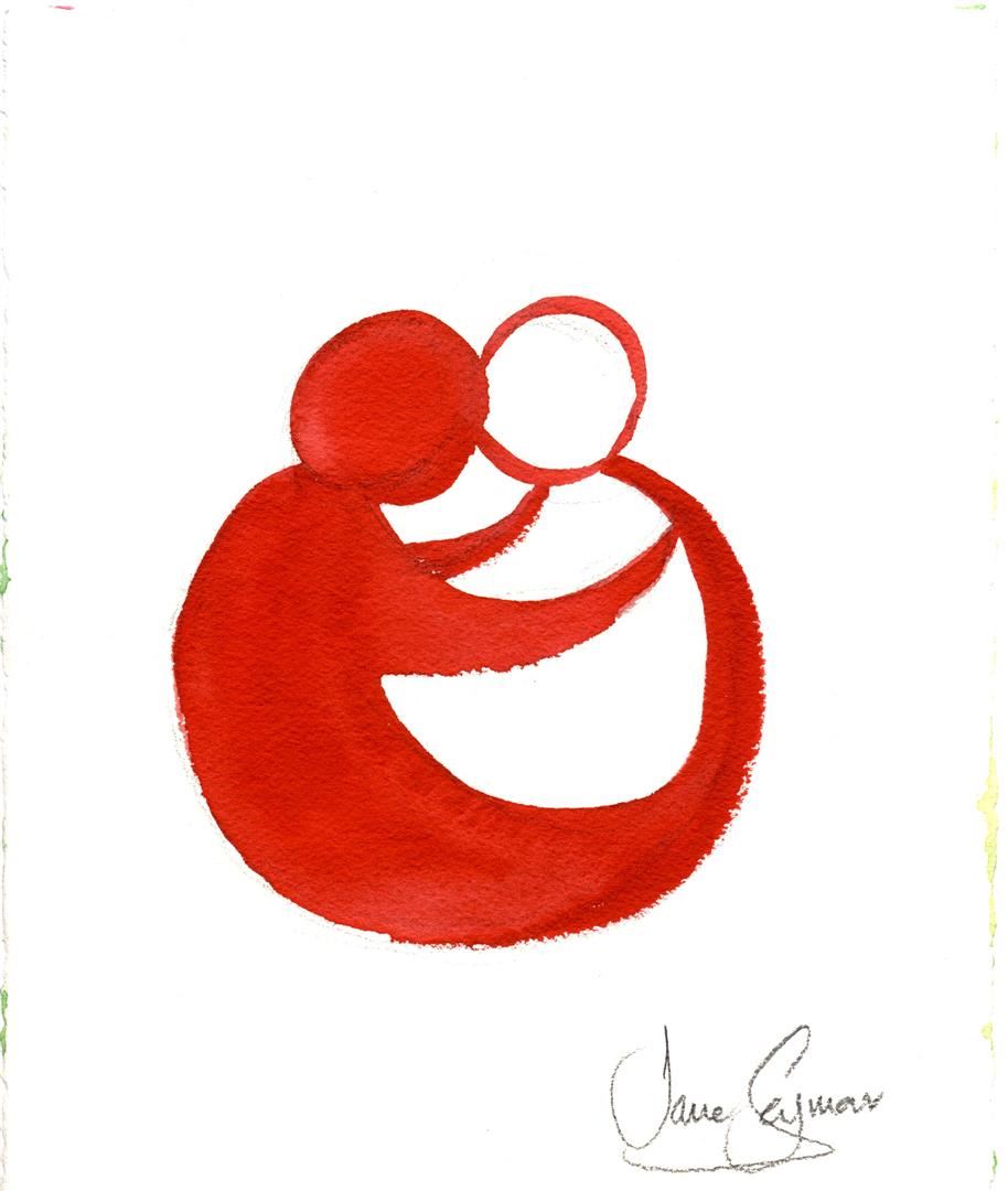 Jane SEYMOUR ORIGINAL: Kindness Campaign - Embrace IV. (red and white). Watercolor on paper, signed lower right, 10 x 8" Tender illustration of human kindness and caring created for Jane SEYMOUR ORIGINAL's Open Heart "Kindness Campaign" Designed for jewelry.