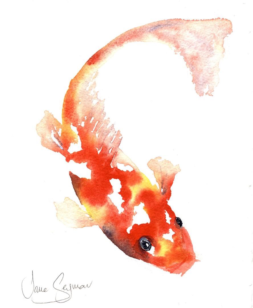 Jane SEYMOUR ORIGINAL: Koi CII.. Watercolor on paper, signed lower left 10 x 8" A favorite theme of the artist; she has created a series of over one hundred meditative watercolors of the symbolic and beloved Koi fish.
