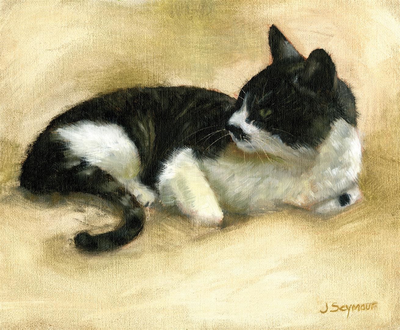 Jane SEYMOUR: Stachie. A limited-edition giclee on canvas, hand-signed by the artist, and numbered verso #11/150, 12 x 14 1/2" The artist's loving depiction of her late cat, Stachie.