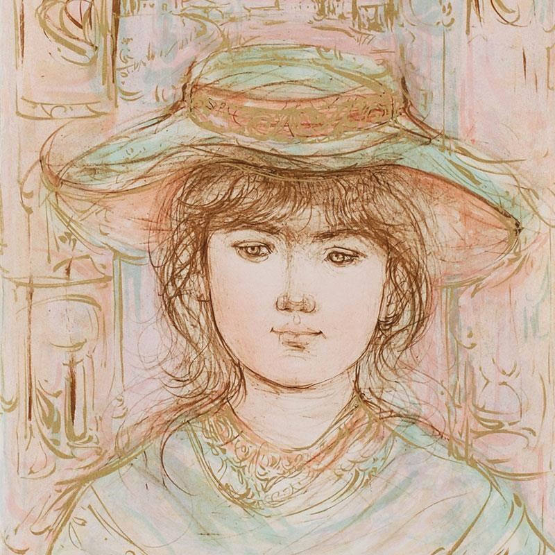"January" is a limited edition lithograph on paper, numbered and hand signed by Edna Hibel (1917-2014). Includes Certificate of Authenticity! Measures approx. 18" x 22.5" (with border), 13" x 15.5" (image).