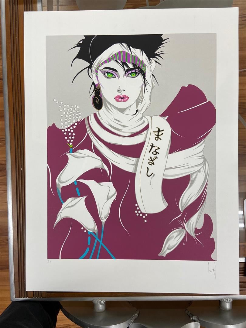A signed and numbered Ltd edition serigraph on paper, this is a stunning 25.25 x 33.25" image of a Japanese girl in traditional costume. It is numbered AP.