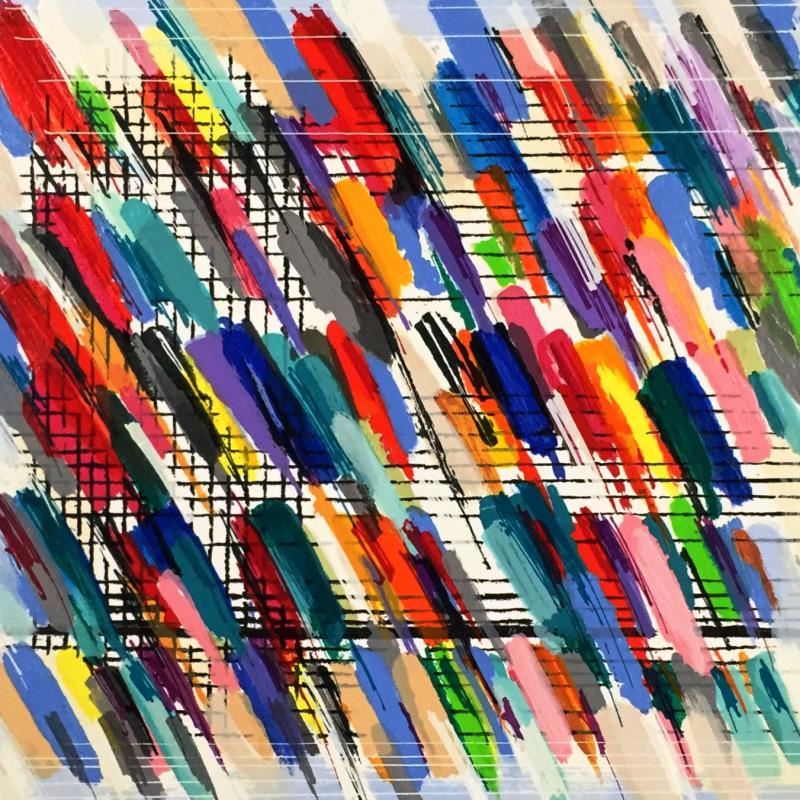 "Jazz Notes" is a limited edition serigraph on paper by Calman Shemi, numbered and hand signed by the artist. Includes Letter of Authenticity. Measures approx. 19.5" x 17.5" (image).