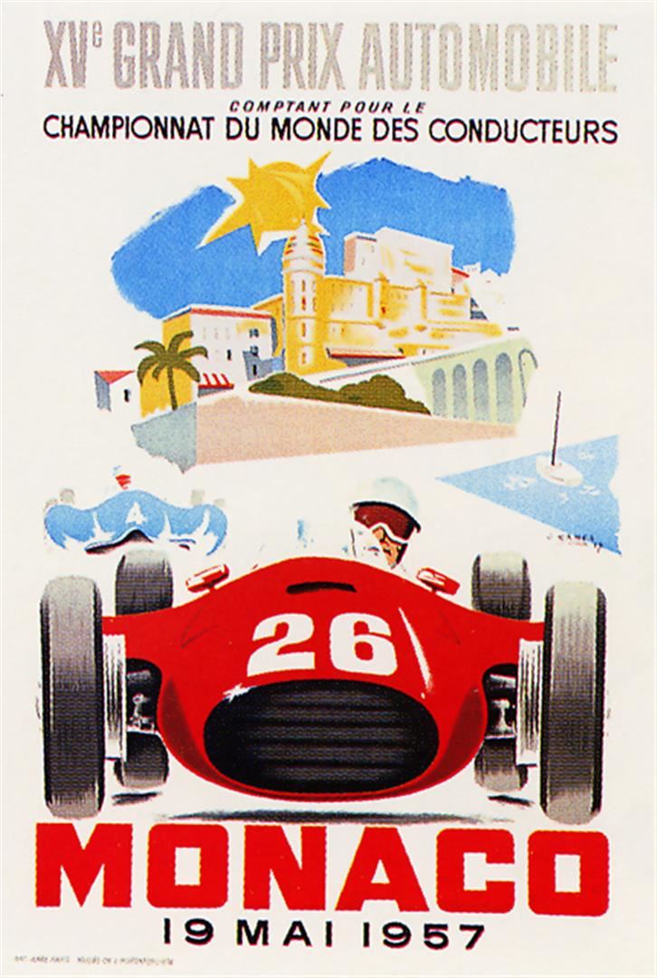 Artist: Jean Ramel Title: Monaco 1957 Medium: Fine Art Reproduction Giclee on Canvas Image Size: Approximately 20 inches x 13.25 inches Unframed on Unstretched Canvas Jean Ramel is a French artist widely known and recognized for his lithographic reproductions of the famous Monaco Grand Prix races.
