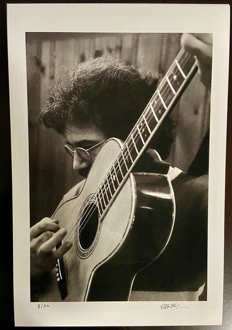 A s/n 14.5x 9.5" image on 18x12" paper of Jerry Garcia tuning his guitar backstage at The Boston Tea Party in 1969.By Rolling Stone Photographer Elliot Blinder.