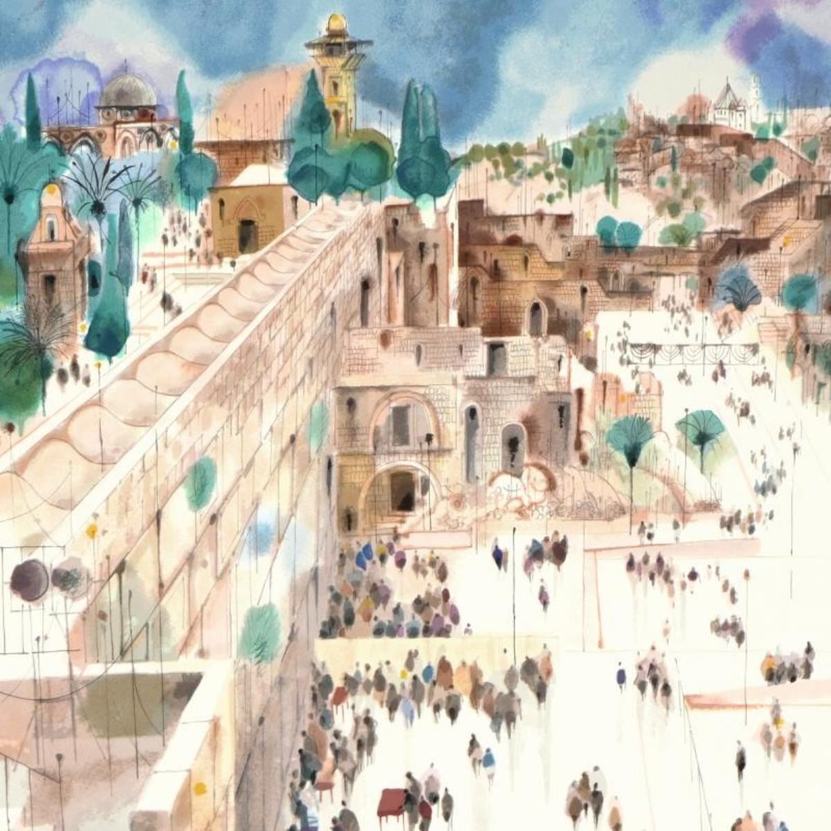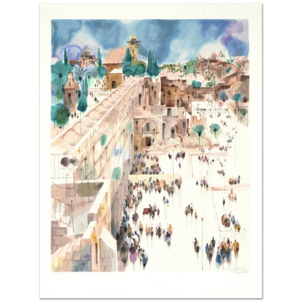 "Jerusalem-The Wall" is a limited edition serigraph on paper by Shmuel Katz (1926-2010), numbered and hand signed by the artist! Measures approx. 26.5" x 34.5 (with border), 23.5 x 28.5" (image).