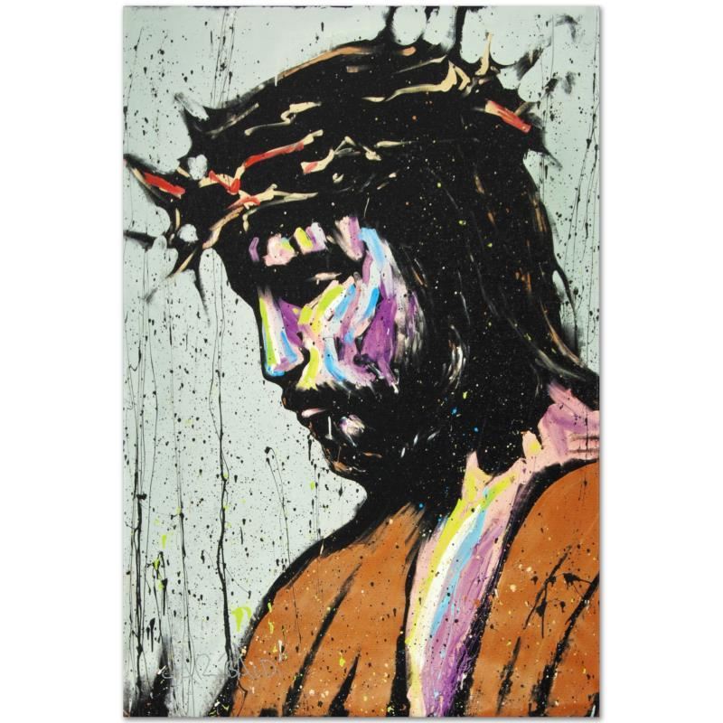 Combining his passions for music and art, David Garibaldi creates stunning visual poetry. "Jesus" is a limited edition giclee on stretched canvas, numbered and bearing the artist's authorized signature. This piece comes gallery wrapped. Includes Letter of Authenticity. Measures approx. 30" x 40" (image).
