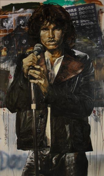 Stephen Holland's dramatic portrait of the Doors' Jim Morrison 43" x 25.75" Giclee PP1, on stretched canvas stretched w/COA