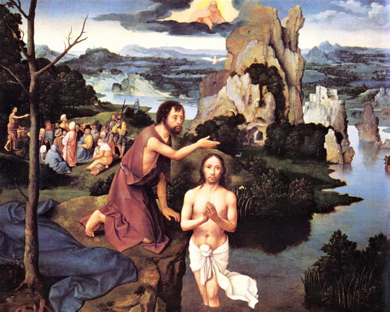 Artist: Joachim Patinir(Patinir) - Title: Baptism of Christ - Medium: Fine Art Giclee on Canvas - Image Size: Approximately 32 inches x 25.5 inches - Unframed on Unstretched Canvas - Biography: Joachim Patinir, also referred to as just Patinier (c. 1480 - 5 October 1524), was a Flemish Renaissance painter of history and landscape subjects. He was Flemish, from the area of modern Wallonia, but worked in Antwerp, then the centre of the art market in the Low Countries. Patinir was a pioneer of landscape as an independent genre and he was the first Flemish painter to regard himself primarily as a landscape painter. He effectively invented the world landscape, a distinct style of panoramic northern Renaissance landscapes which is Patinir's important contribution to Western art. There are only five paintings signed by Patinir, but many other works have been attributed to him or his workshop with varying degrees of probability. The ones that are signed read: (Opus) Joachim D. Patinier, the "D" in his signature signifying Dionantensis ("of Dinant"), reflecting his place of origin.