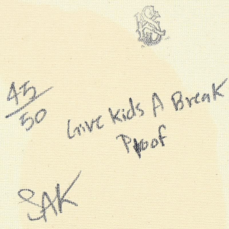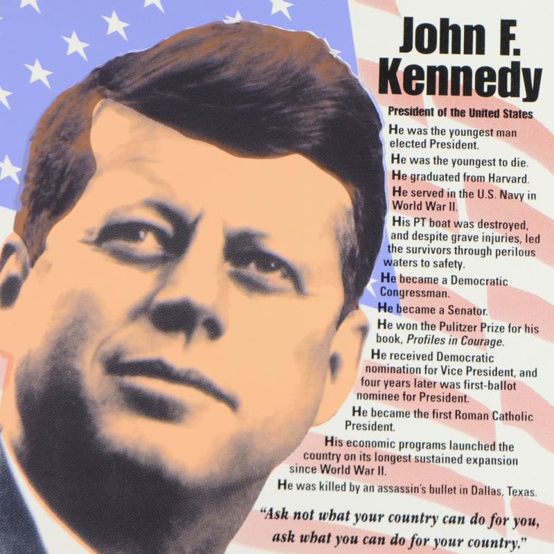 John F. Kennedy is a limited edition hand pulled silkscreen on canvas by Andy Warhol protege Steve Kaufman (1960-2010). This piece is numbered 45/50 and hand signed inverso. Includes letter of authenticity. Measures approx. 24" x 24" (image).