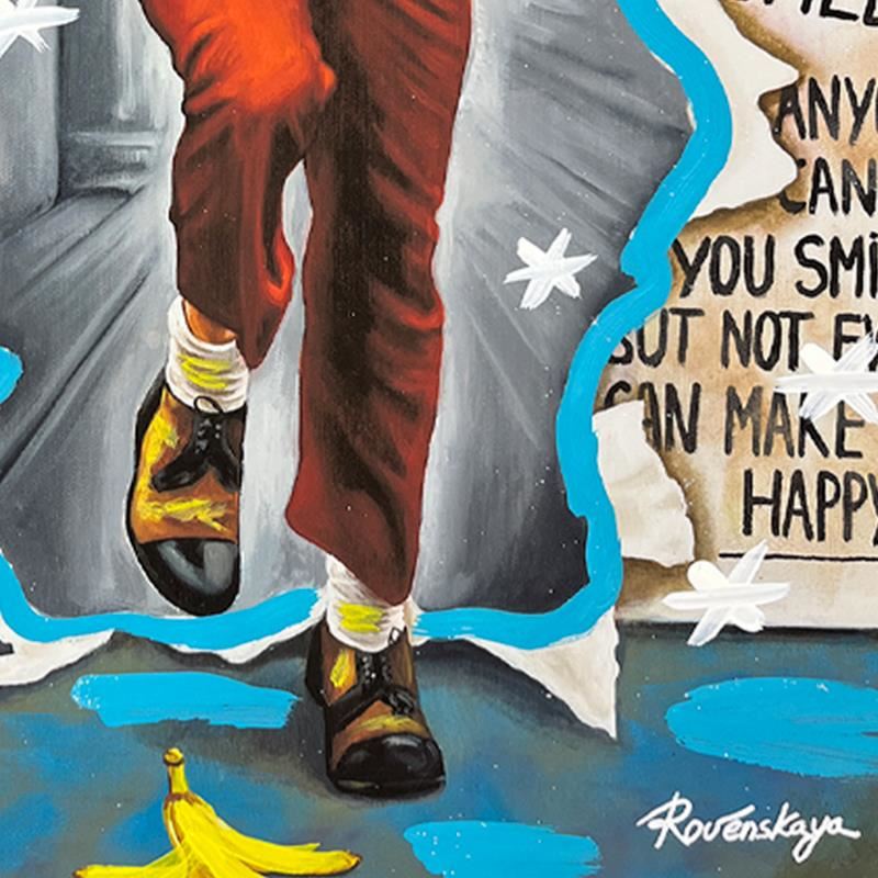 "Joker" is a one-of-a-kind mixed media on deckle edge paper by Nastya Rovenskaya; hand signed by the artist. This piece comes custom framed and includes letter of authenticity. Measures approximately 36.5" x 30" (framed), 30.5" x 24" (image).