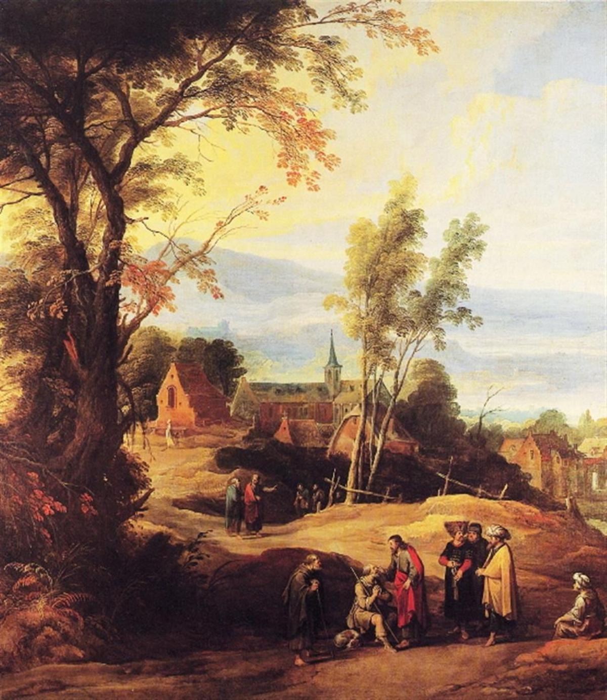 Artist: Joos de Momper - Title: Christ Healing a Blind Man - Medium: Fine Art Giclee on Canvas - Image Size: Approximately 20 inches x 17.5 inches - Unframed on Unstretched Canvas - Biography: Joos de Momper the Younger or Joost de Momper the Younger (1564 - February 5, 1635) was a Flemish landscape painter active in Antwerp between the late 16th century and the early 17th century. Brueghel's influence is clearly evident in many of de Momper's paintings. His work is situated at the transition from late 16th-century Mannerism to the greater realism in landscape painting that developed in the early 17th century. He achieved considerable success during his lifetime.