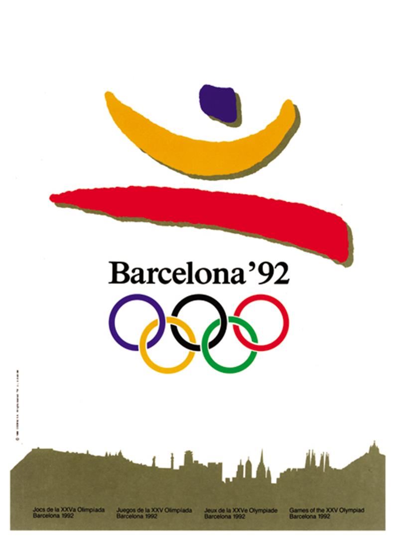 Artist: Josep M. Trias Title: Barcelona 1992 Olympics Medium: Fine Art Giclee on Canvas Image Size: Approximately 20 inches x 14.5 inches Unframed on Unstretched Canvas Details: This is a beautiful Reproduction Giclee on Archival Canvas Three strokes form the figure of a leaping athlete in the logo of the 1992 Olympic Games, designed by Spanish artist Josep M. Trias. Despite its simplicity, the choice of colours and shapes creates a direct relationship between the logo and the text and rings below.