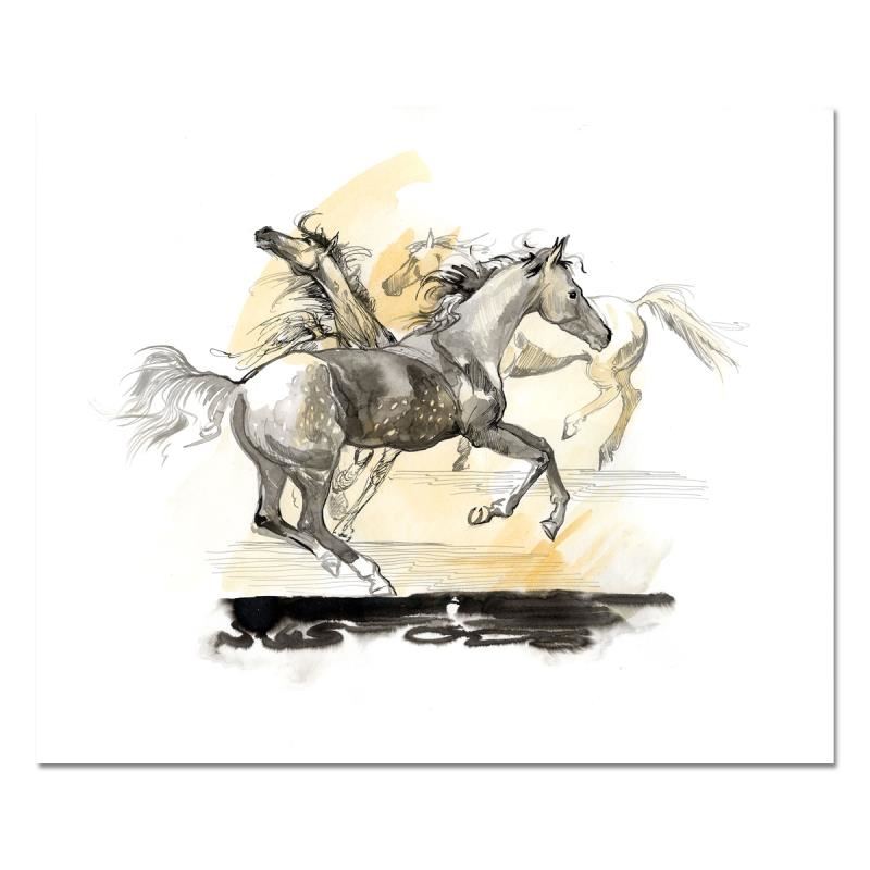 "Joy" is an original painting, mixed media (ink and gouache) on vellum art paper, by Lena Sotskova. This piece is hand signed by the artist, hand titled, and accompanied by a certificate of authenticity. Measures approximately 14" x 17". This item requires special handling and may have a longer than usual turnaround.